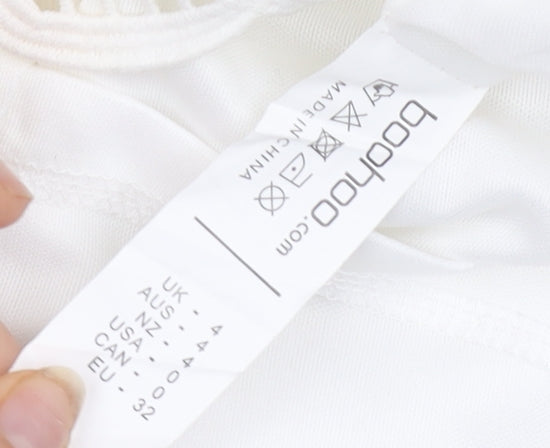 Step into effortless elegance with this Boohoo women's lace mini slip dress, perfect for any summer or spring occasion. Featuring a chic V-neckline and strappy sleeves that lend a touch of sophistication, this dress embodies a bohemian and beach-ready theme ideal for both casual outings and cocktail parties. Crafted from 100% polyester lace, it offers a comfortable fit and comes fully lined to ensure confidence wherever you go. The lightweight fabric ensures it drapes beautifully against your form, enhanced by its adjustable design for a personalised fit. A discreet zip closure at the back makes it easy to slip on and off, while the smooth, no-pattern aesthetic provides a blank canvas for accessorising. Presented in a clean, crisp white hue, this dress captures an air of purity and is perfect for making a subtle yet impactful fashion statement. Whether you're heading for a daytime brunch by the sea or a vibrant evening affair, let this Boohoo dress be your companion. Designed in petites sizing and finished with intricate lace accents, pair it with your favourite sandals and a wide-brimmed hat for a classic look, or layer with statement jewellery to heighten its elegance. Its new with tags condition assures no visible flaws, and hand wash care instructions maintain its pristine quality over time.
