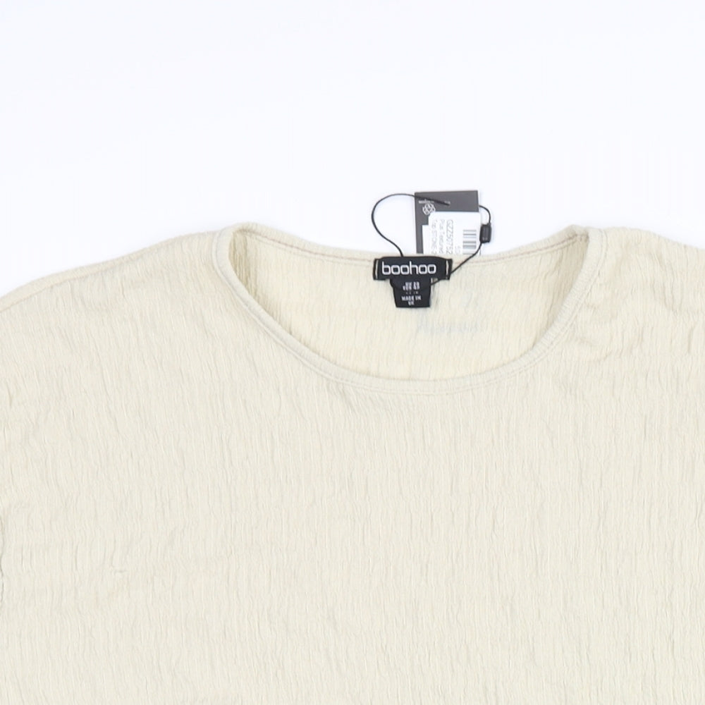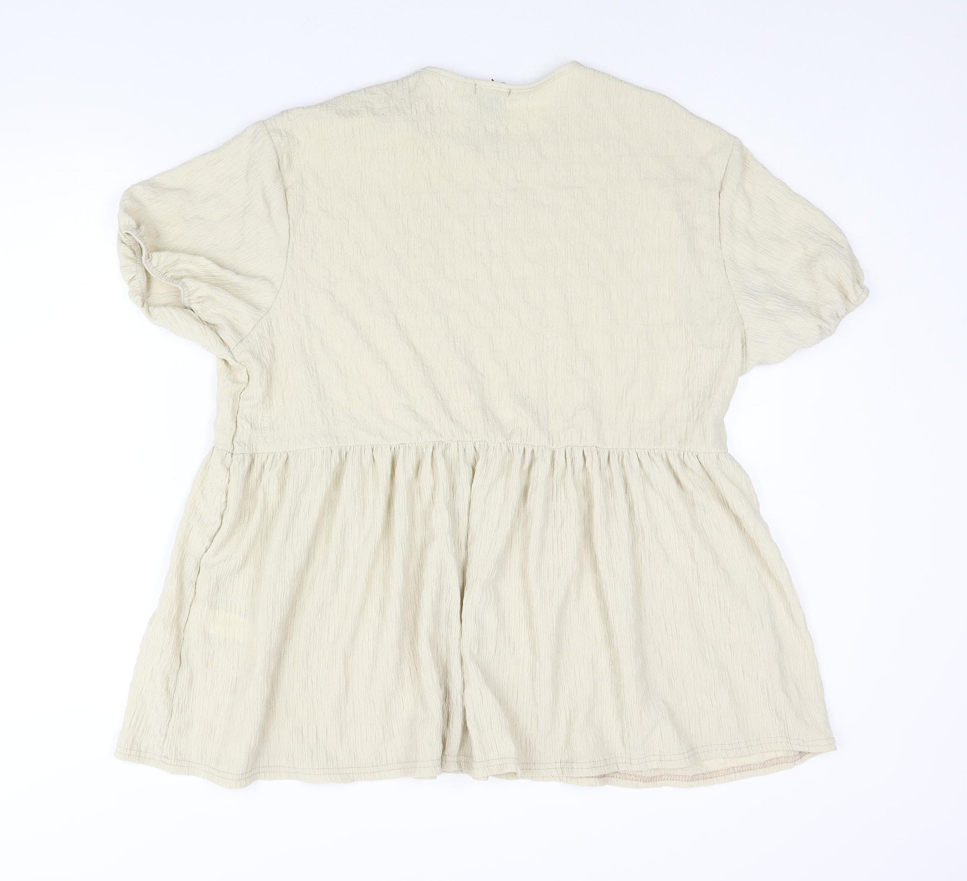 Womens Beige Polyester Basic Blouse Size 20 Round Neck - Peplum Textured