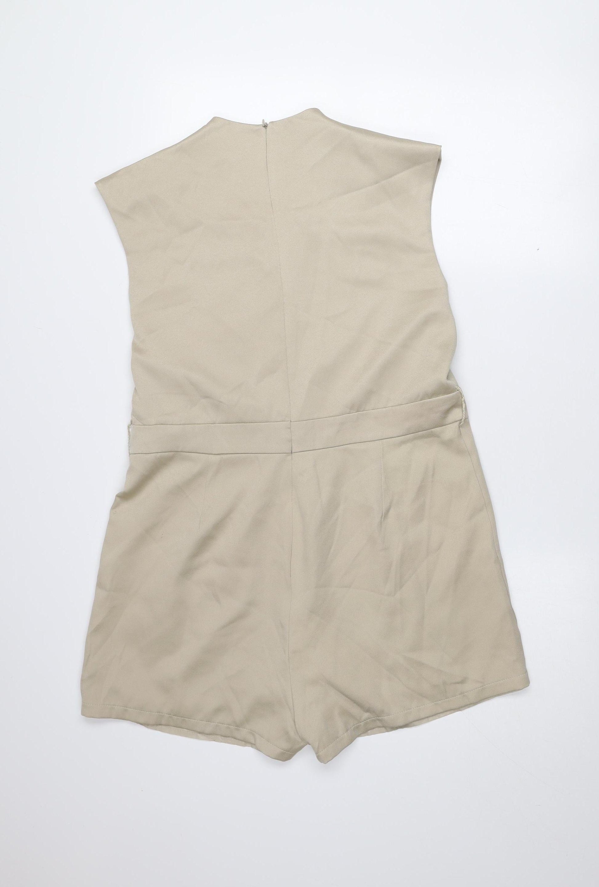 Women's Beige Sleeveless V-Neck Playsuit Size 14