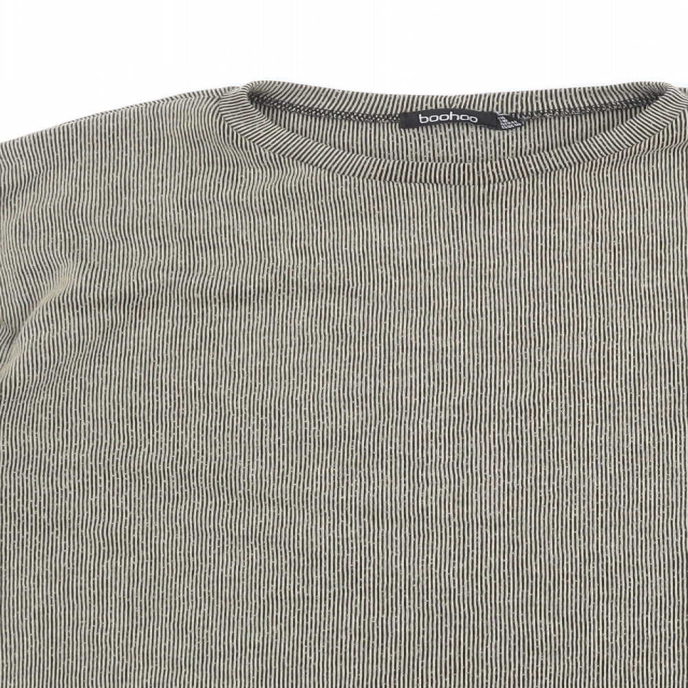 Womens Beige Striped Polyester Basic Blouse Size 14 Round Neck