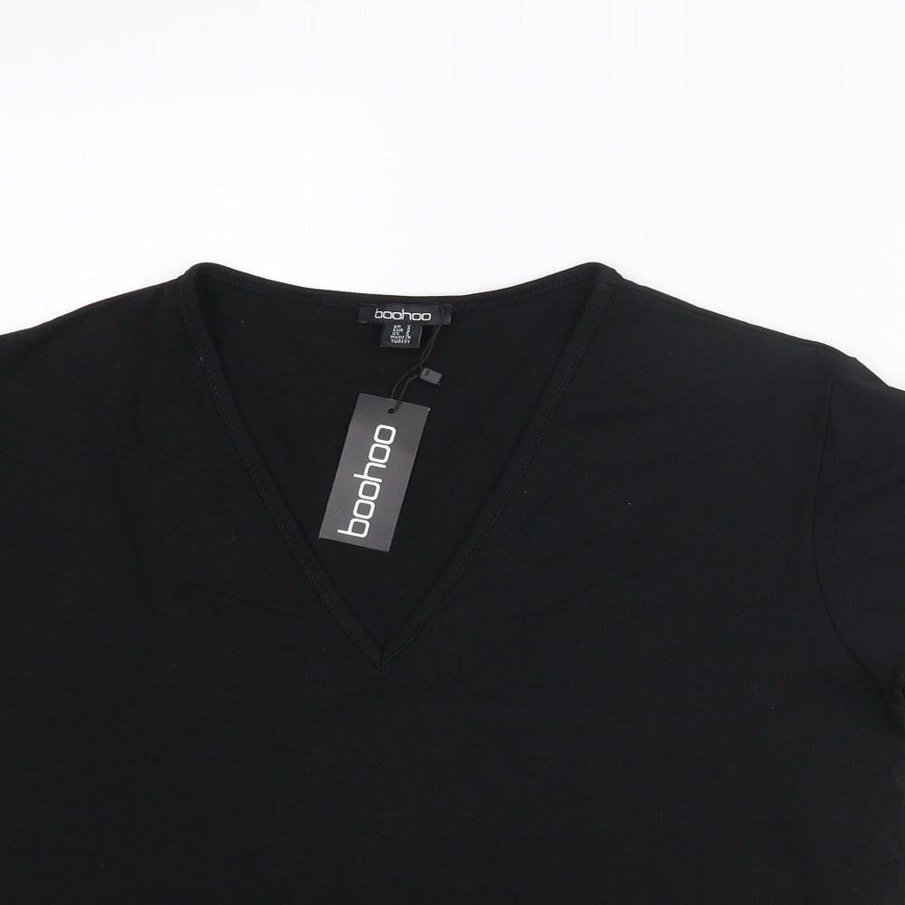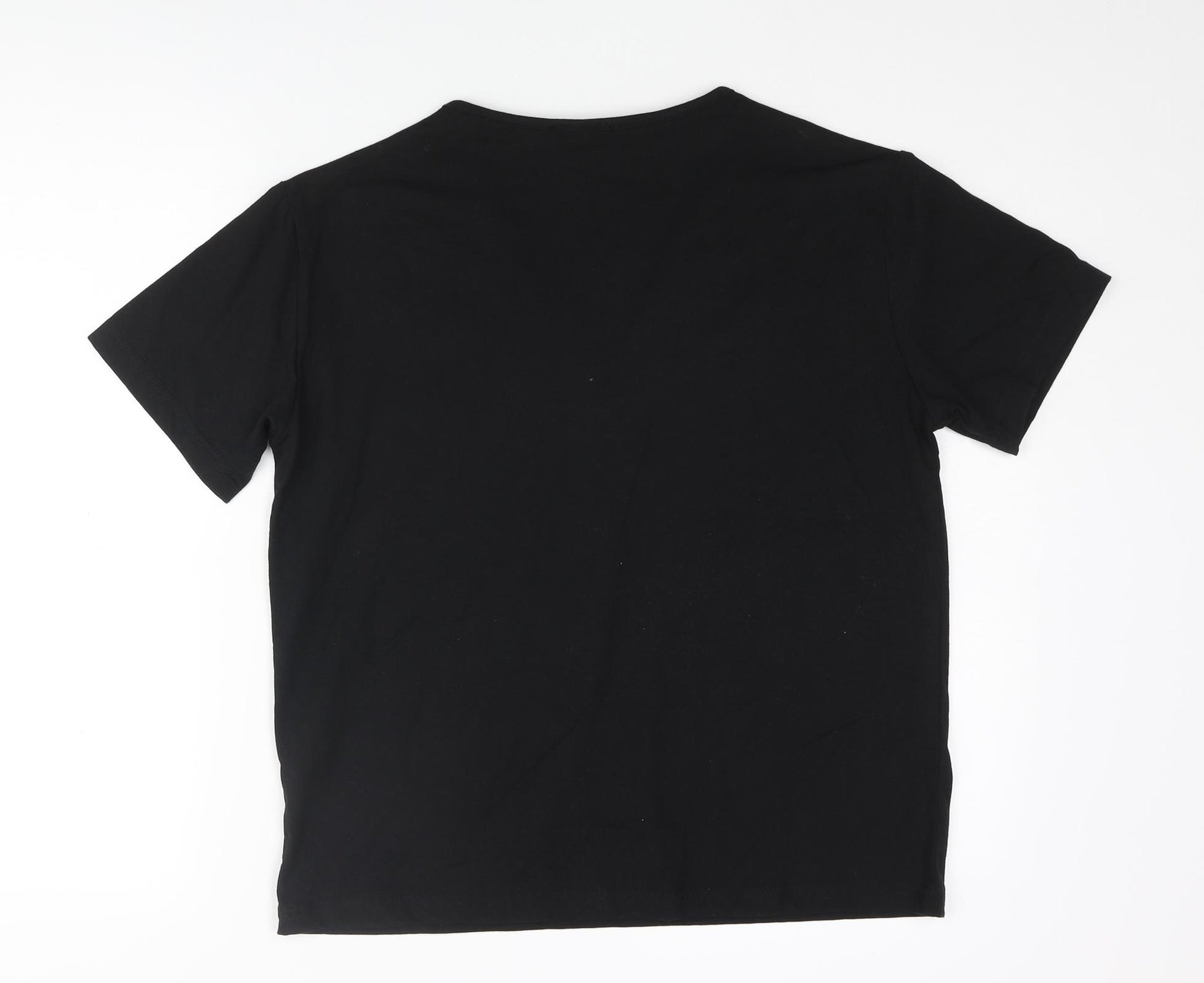Womens Black Cotton Basic T-Shirt Size S V-Neck