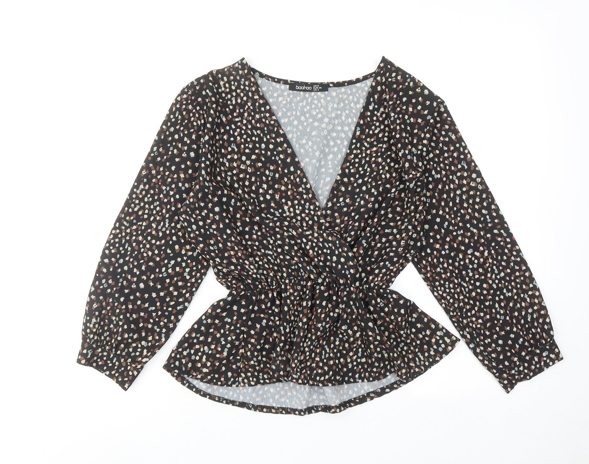 Womens Black Geometric Polyester Basic Blouse Size 8 V-Neck - Wrap Front Detail