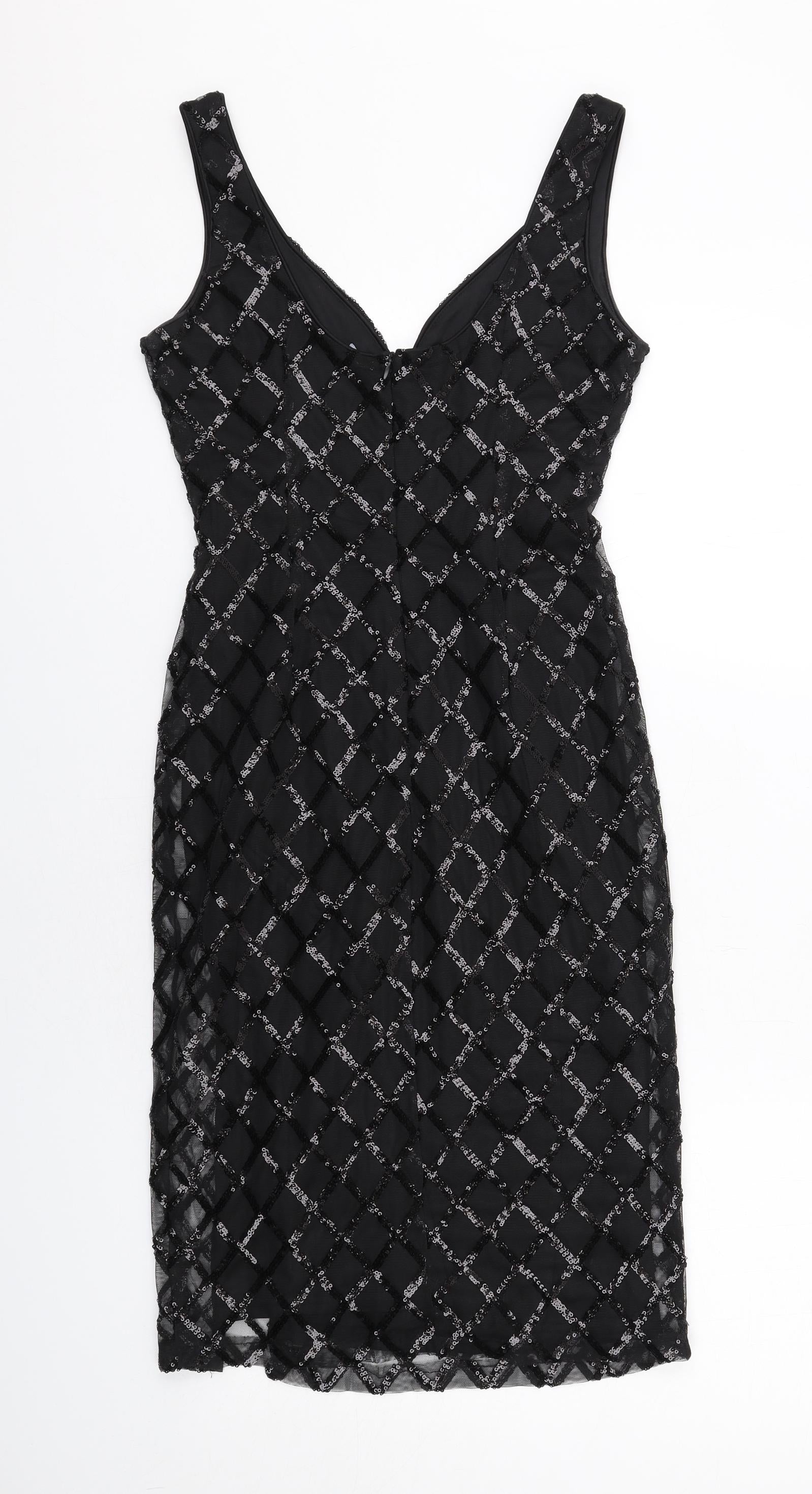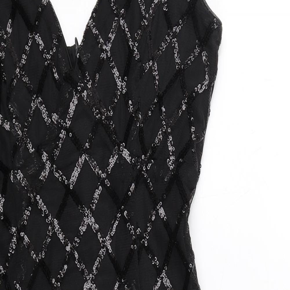 Womens Black Geometric Polyester Shift Size 6 V-Neck Zip