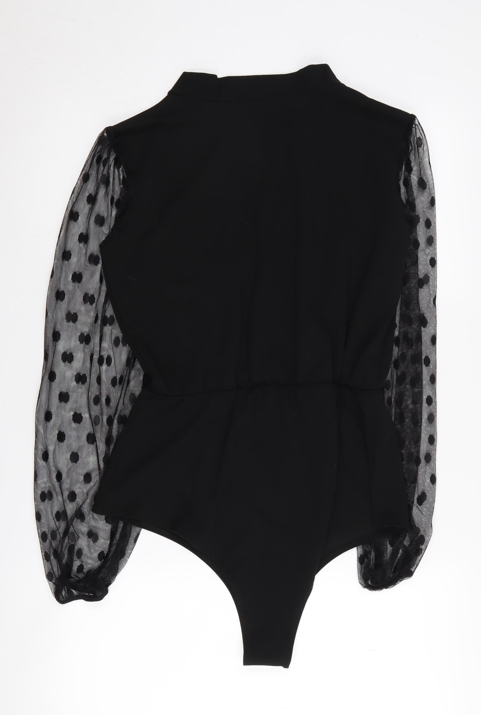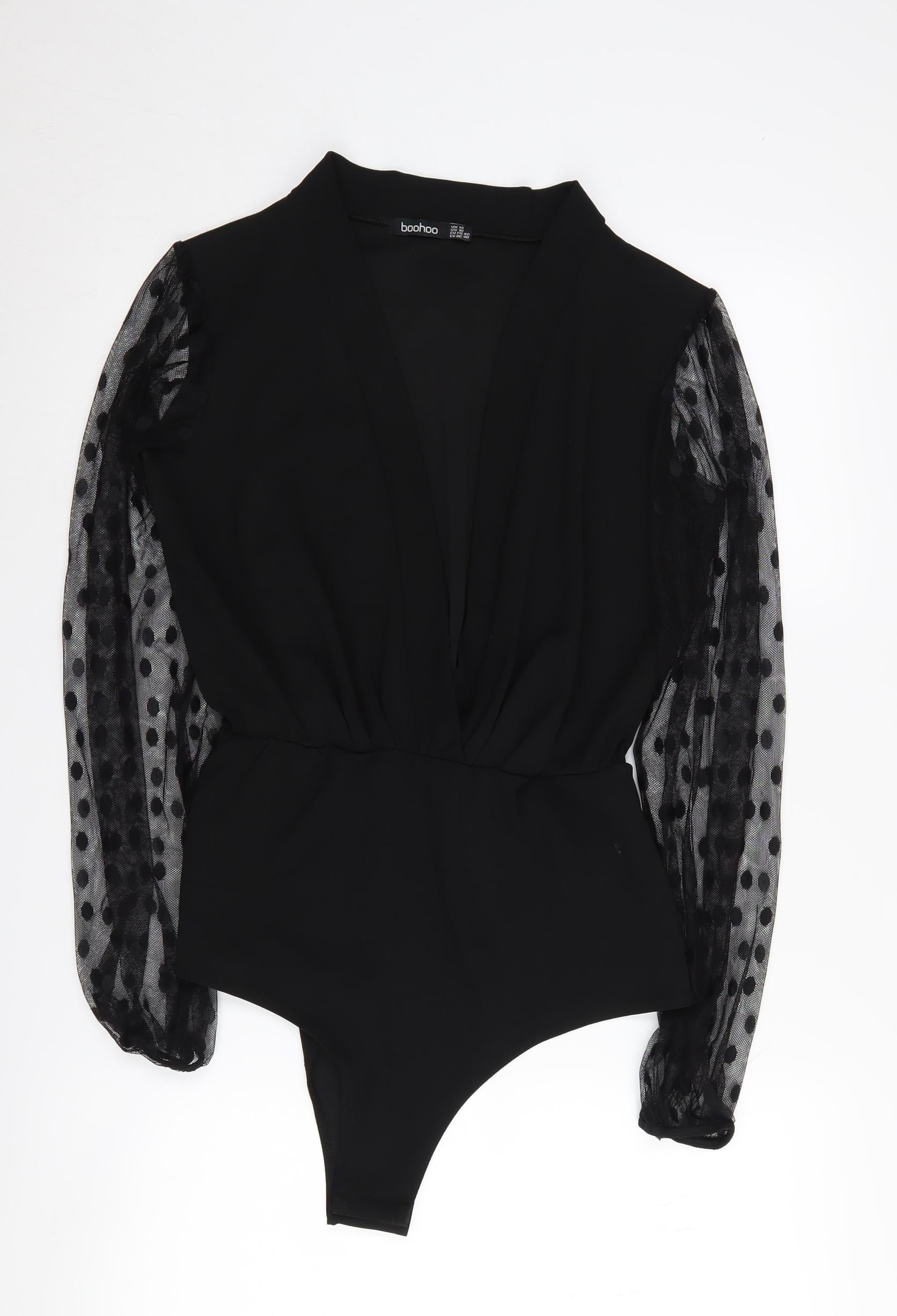 Boohoo Women Black Lace Long Sleeve Bodysuit Size 14 Elegant Partywear
