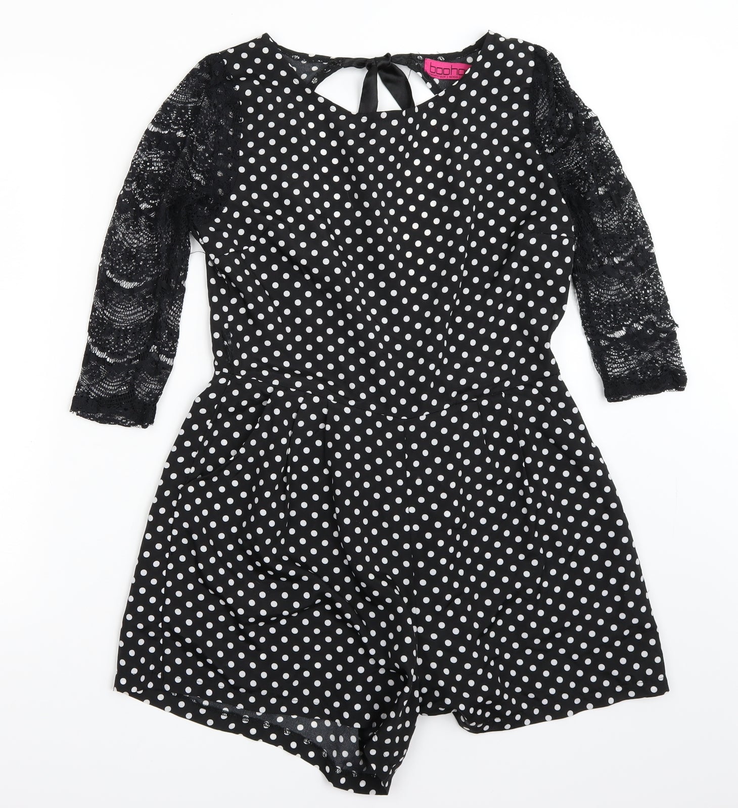 Womens Black Polka Dot Playsuit One-Piece Size 12
