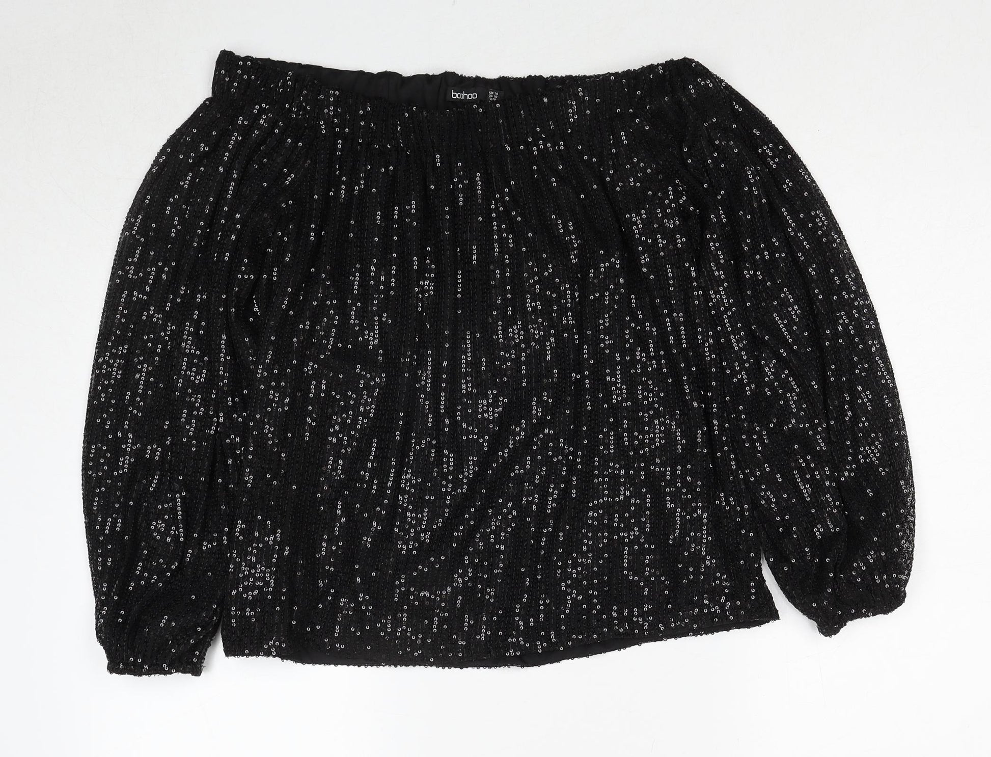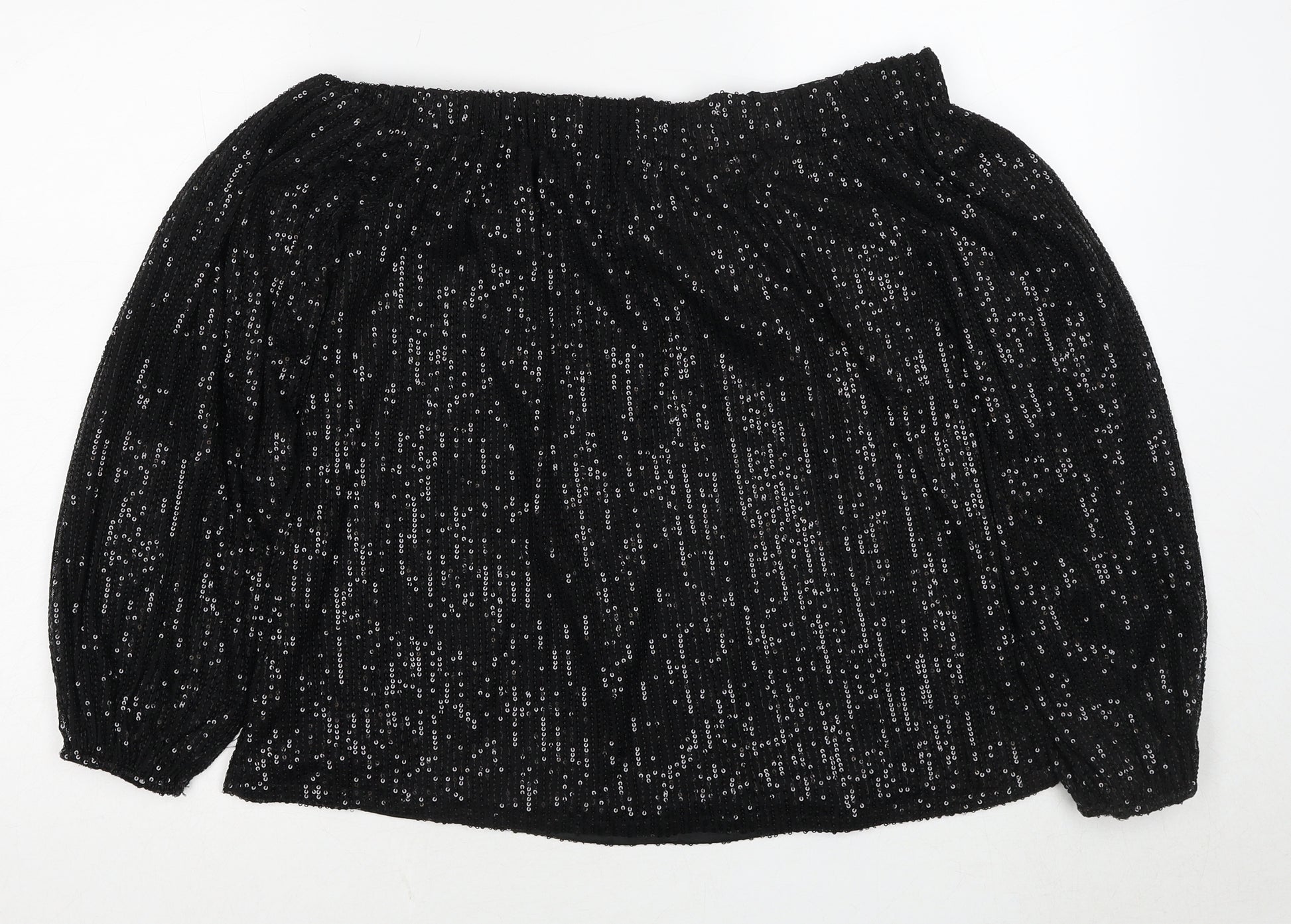 Womens Black Polyester Basic Blouse Size 14 Off the Shoulder