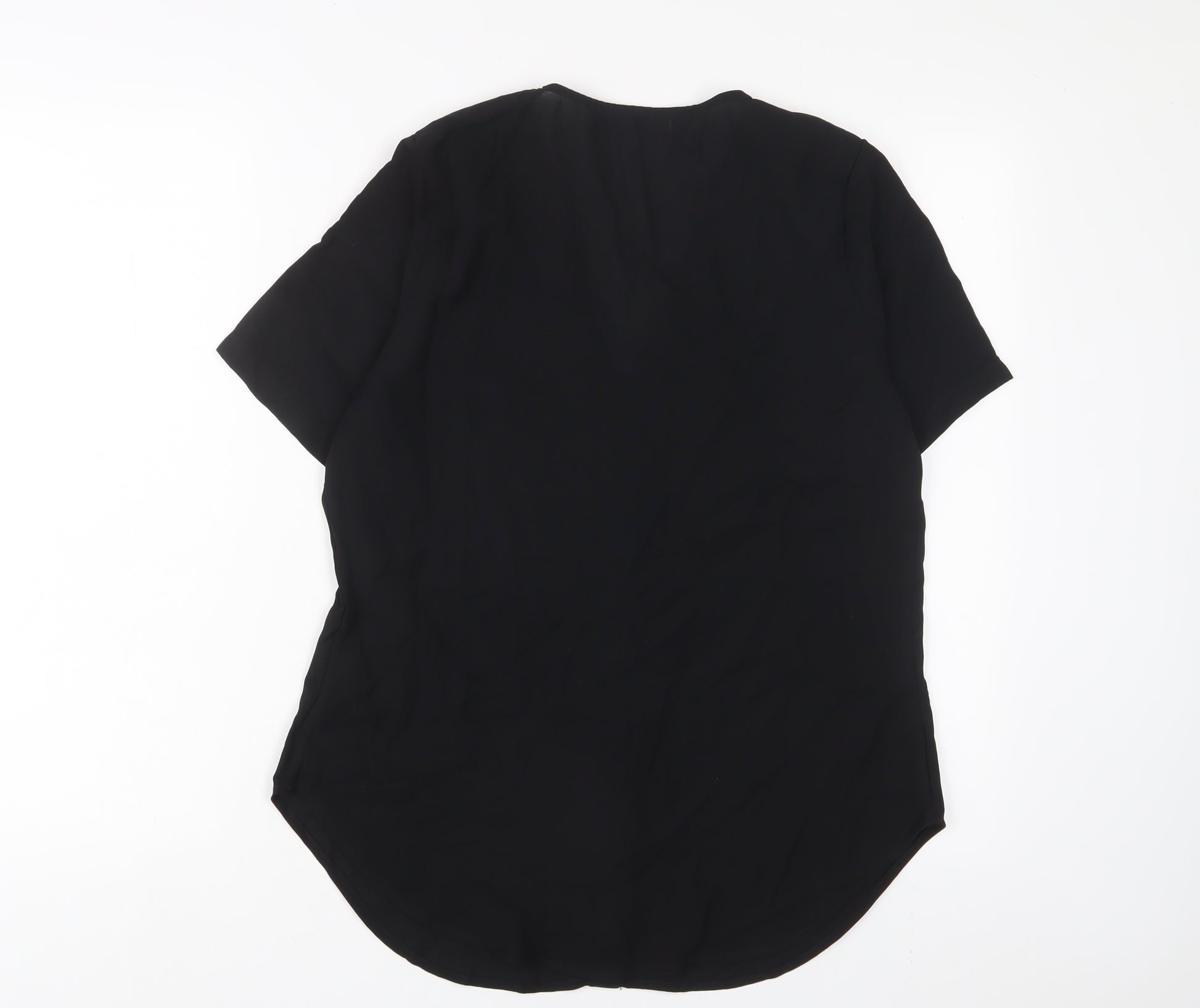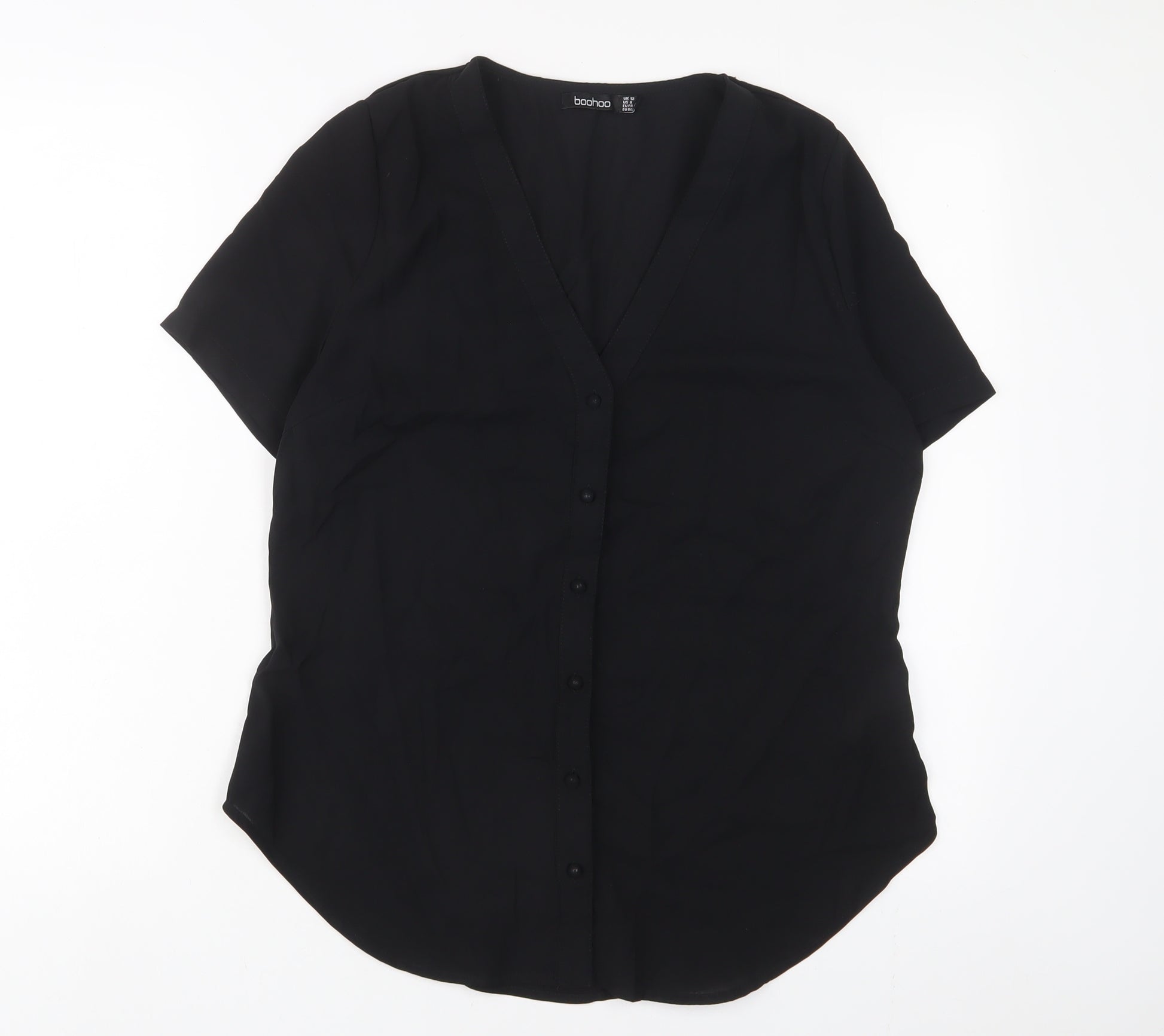 Womens Black Polyester Basic Button-Up Size 12 V-Neck