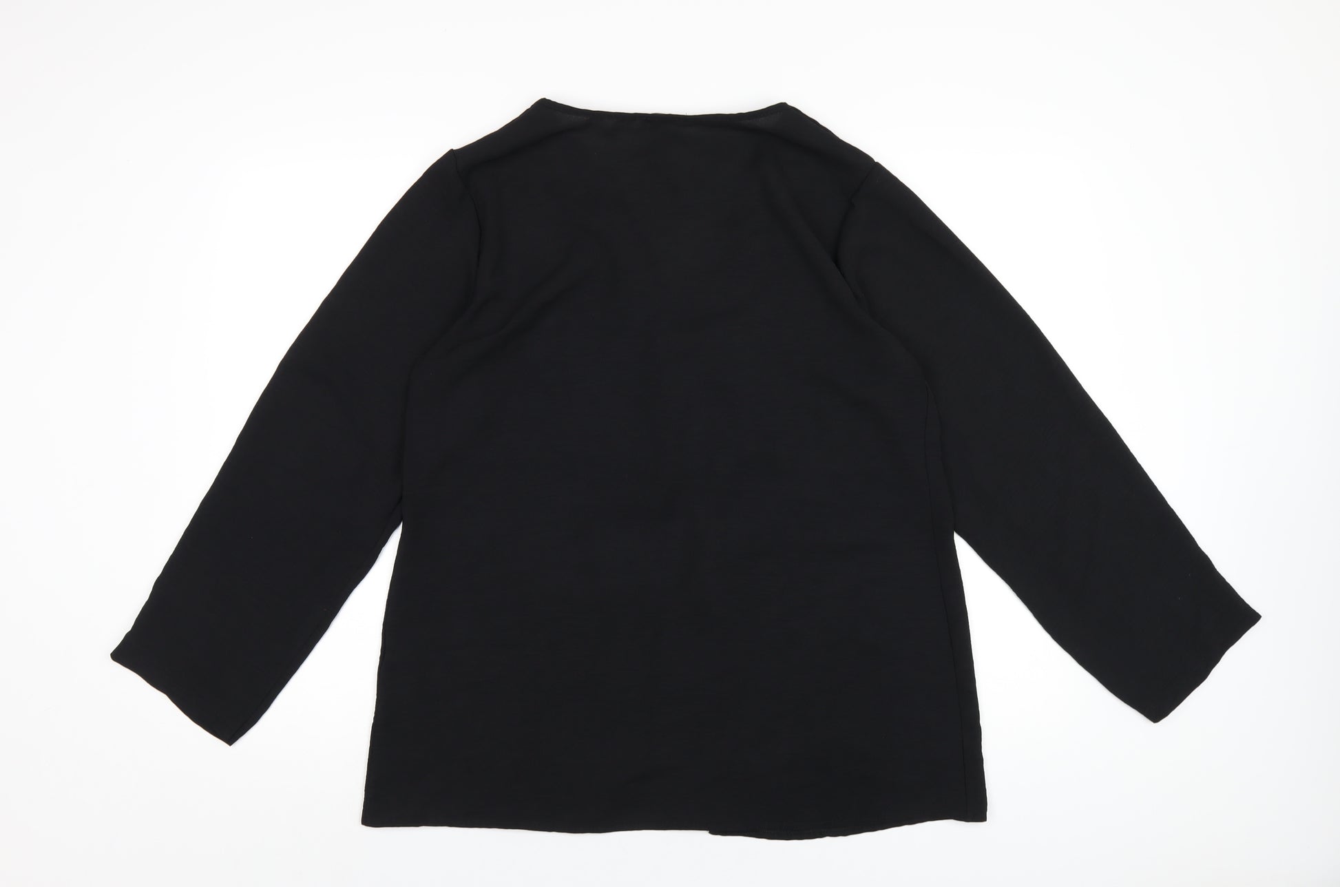 Womens Black Polyester Basic T-Shirt Size 14 V-Neck