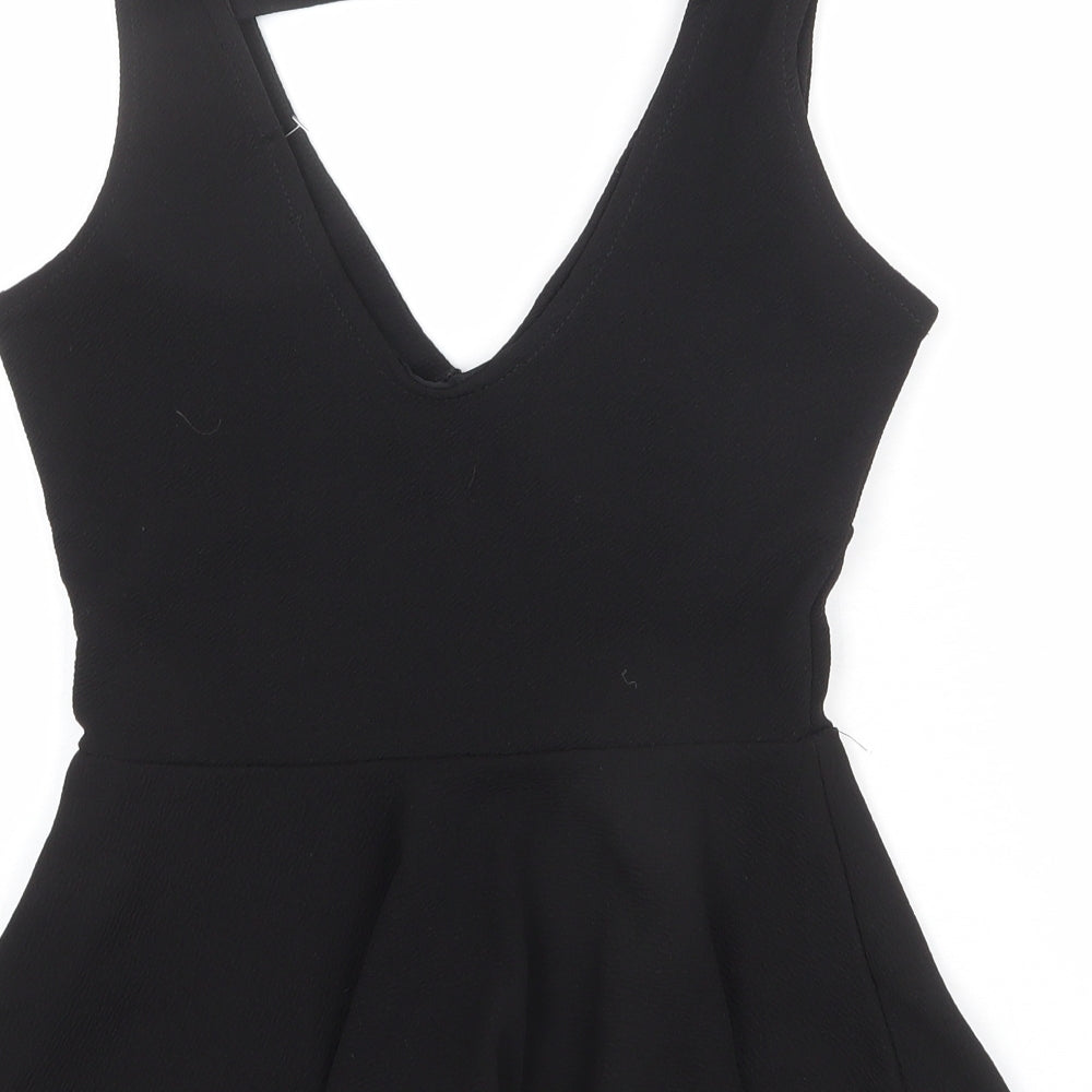 Womens Black Polyester Basic Tank Size 8 V-Neck