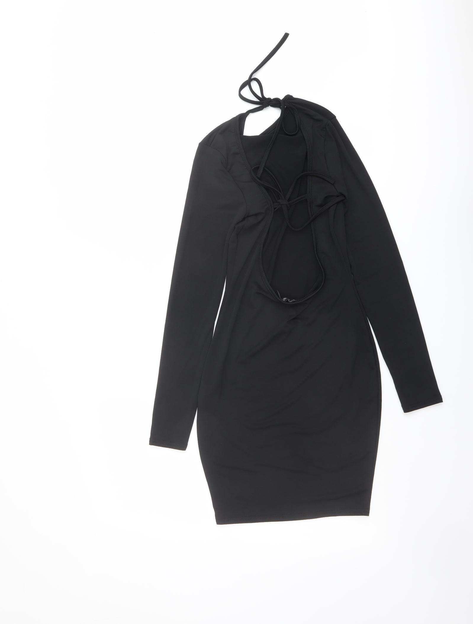 Womens Black Polyester Bodycon Size 10 Round Neck Tie