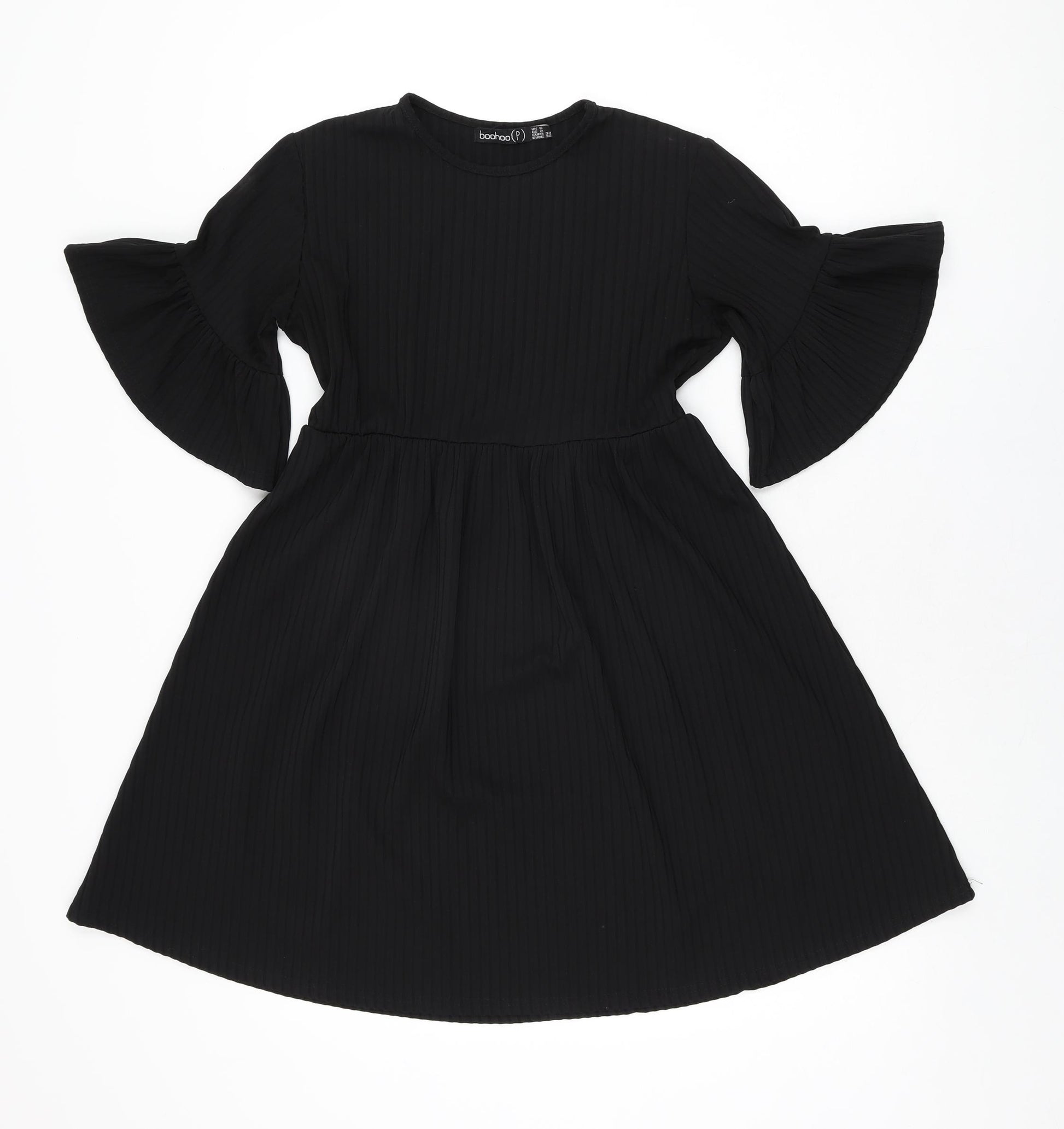 Womens Black Polyester Skater Dress Size 6 Round Neck Pullover