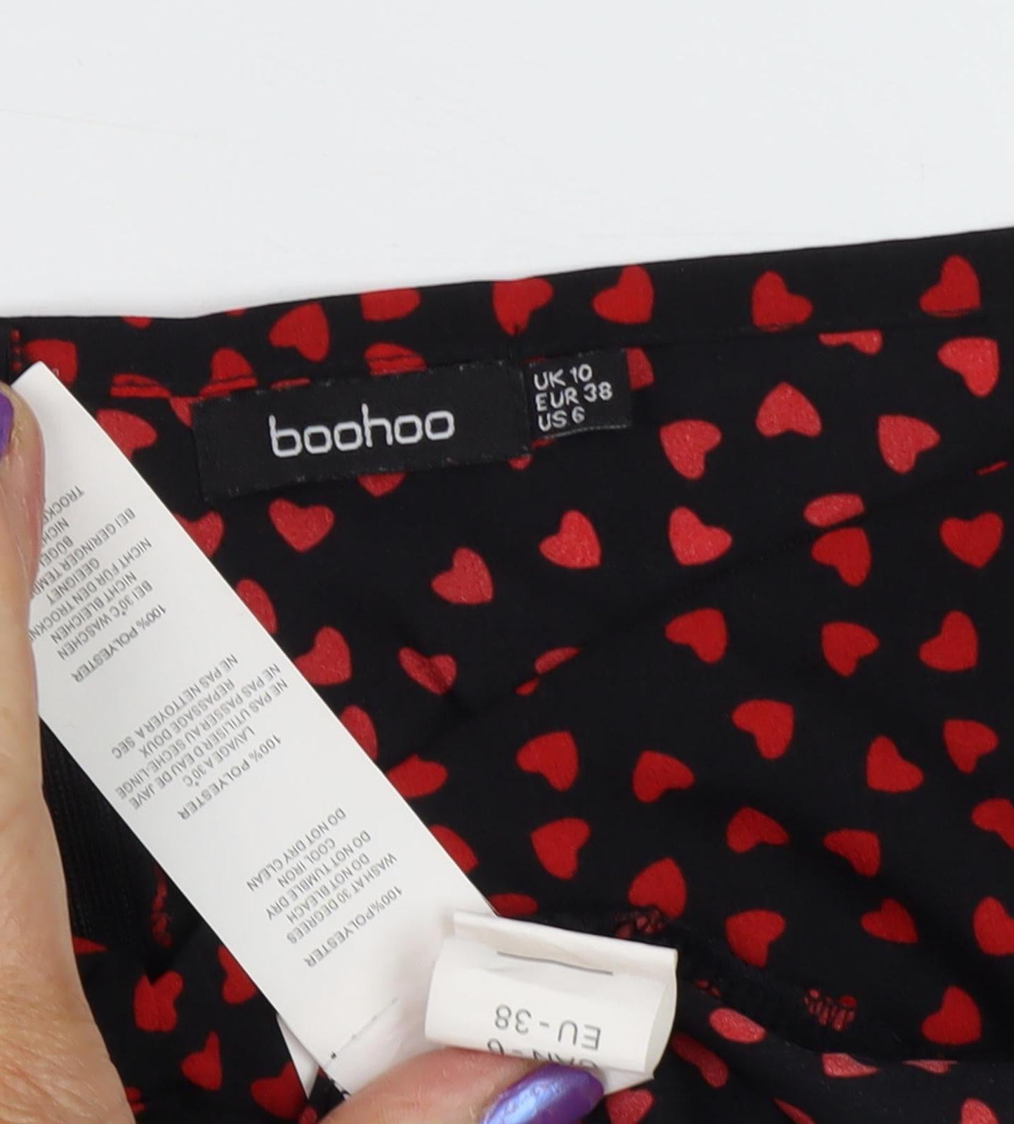 Elevate your wardrobe with this stunning Boohoo Women's Bodycon Dress. Designed for women looking to make a bold statement, this dress features a captivating black and red heart pattern that is perfect for any romantic occasion. The off-the-shoulder neckline adds a touch of elegance, while the puff sleeves bring a playful element to the design. Ideal for parties and cocktail events, this dress offers a knee-length cut that complements the body's natural curves. Crafted from lightweight polyester, this dress is perfect for summer wear, ensuring you stay comfortable and stylish throughout the day. The zip closure at the back makes it easy to slip into, while the ruffle accents at the hem provide a chic finishing touch. Machine washable, this garment is easy to care for, and its new condition with tags ensures it's a fresh piece for your collection. The versatile design allows you to pair it with a variety of accessories, making it a go-to choice for summer social gatherings. Don't miss out on the opportunity to add this beautiful piece to your wardrobe. With its romantic theme and eye-catching design, this Boohoo Bodycon Dress is sure to turn heads.