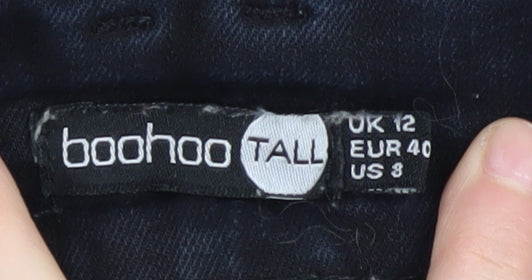 Elevate your wardrobe with these classic black skinny jeans from Boohoo, designed specifically for taller women. Crafted in a comfortable and durable denim blend, these jeans feature a slim fit that hugs your silhouette perfectly, while the mid-rise design and stretch fabric ensure all-day comfort. With a modern dark wash and sleek no-pattern appearance, they're perfect for any occasion, be it casual outings or a night out. The jeans include a 5-pocket design and a secure button closure accentuated by stylish buttons. Machine washable and easy to care for, they are a must-have staple for every fashionista. The blend of 98% cotton and 2% elastane ensures that these jeans provide you with flexibility and a soft touch. Product is in excellent condition, showing minimal wear.