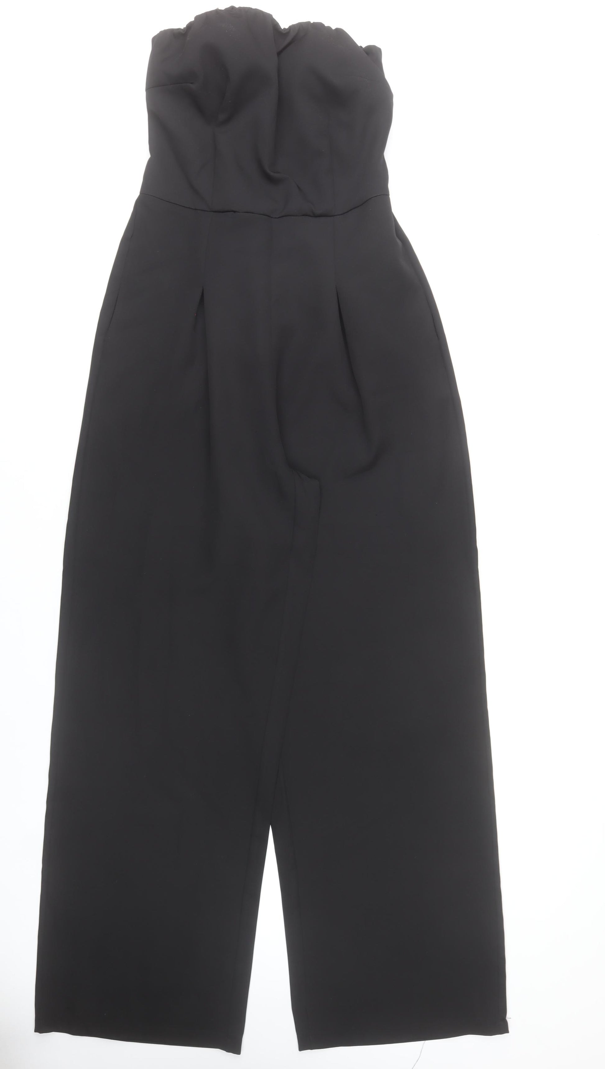 Womens Black Strapless Wide-Leg Jumpsuit UK 12