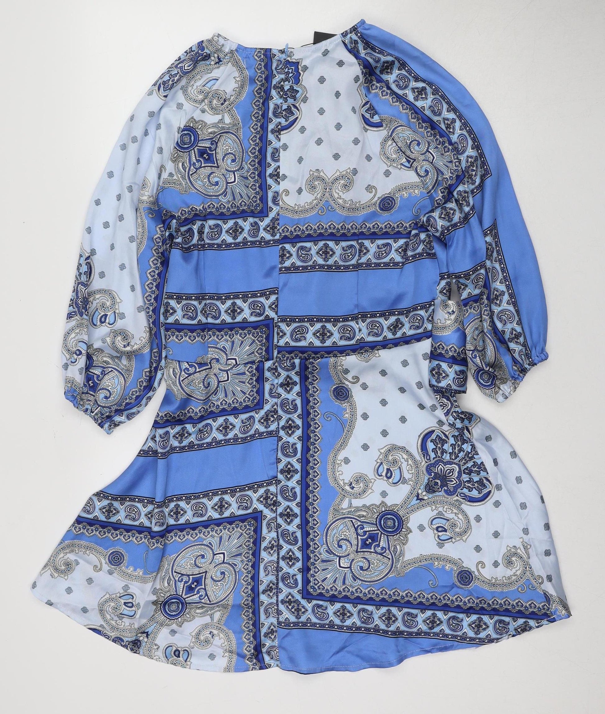 Women's Blue Paisley Long Sleeve Dress, Size 16