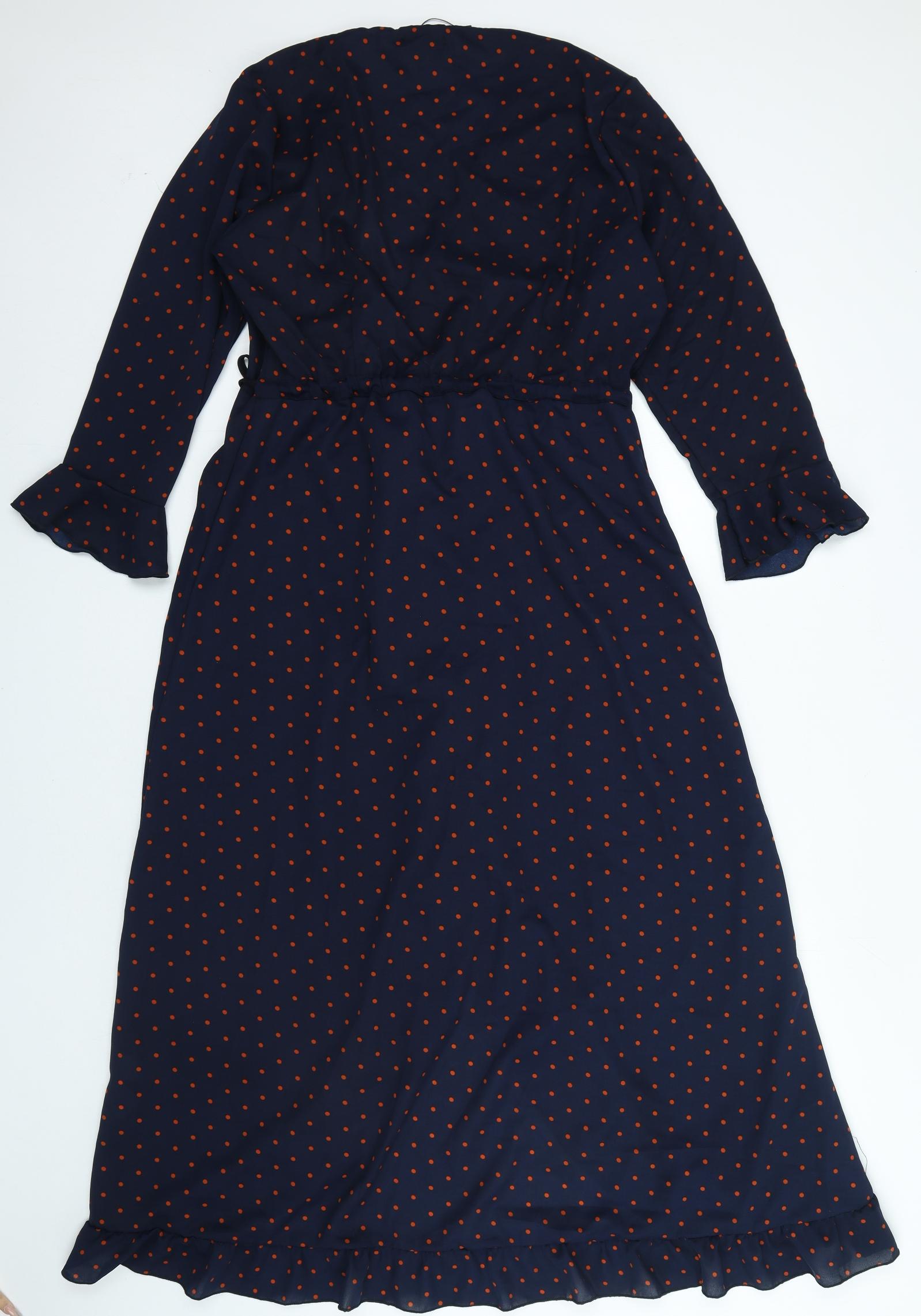 Womens Blue Polka Dot Polyester Wrap Dress Size 14 V-Neck Tie