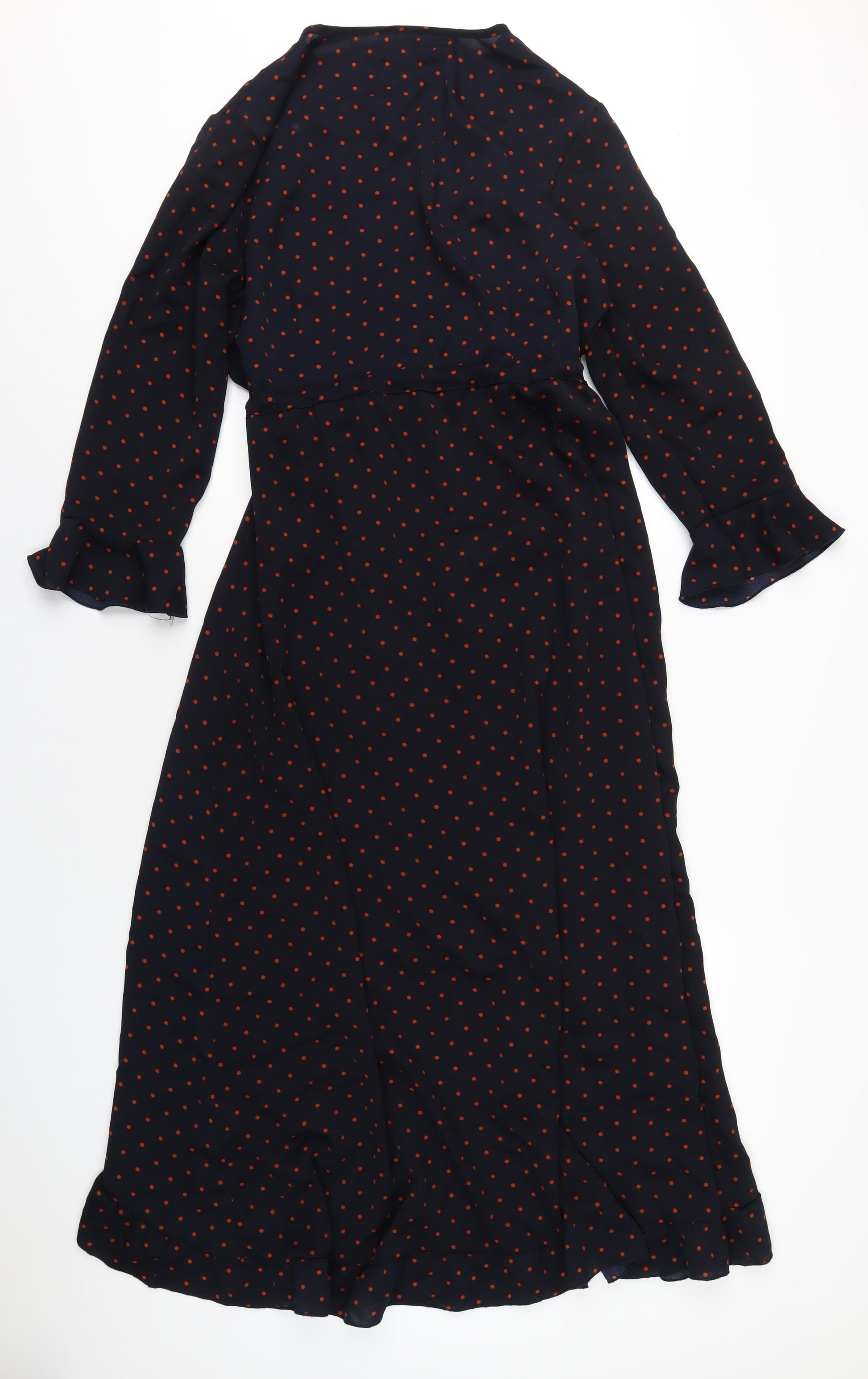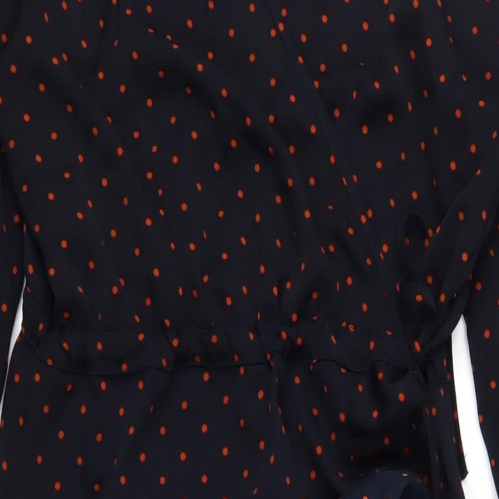 Womens Blue Polka Dot Polyester Wrap Dress Size 16 V-Neck Tie