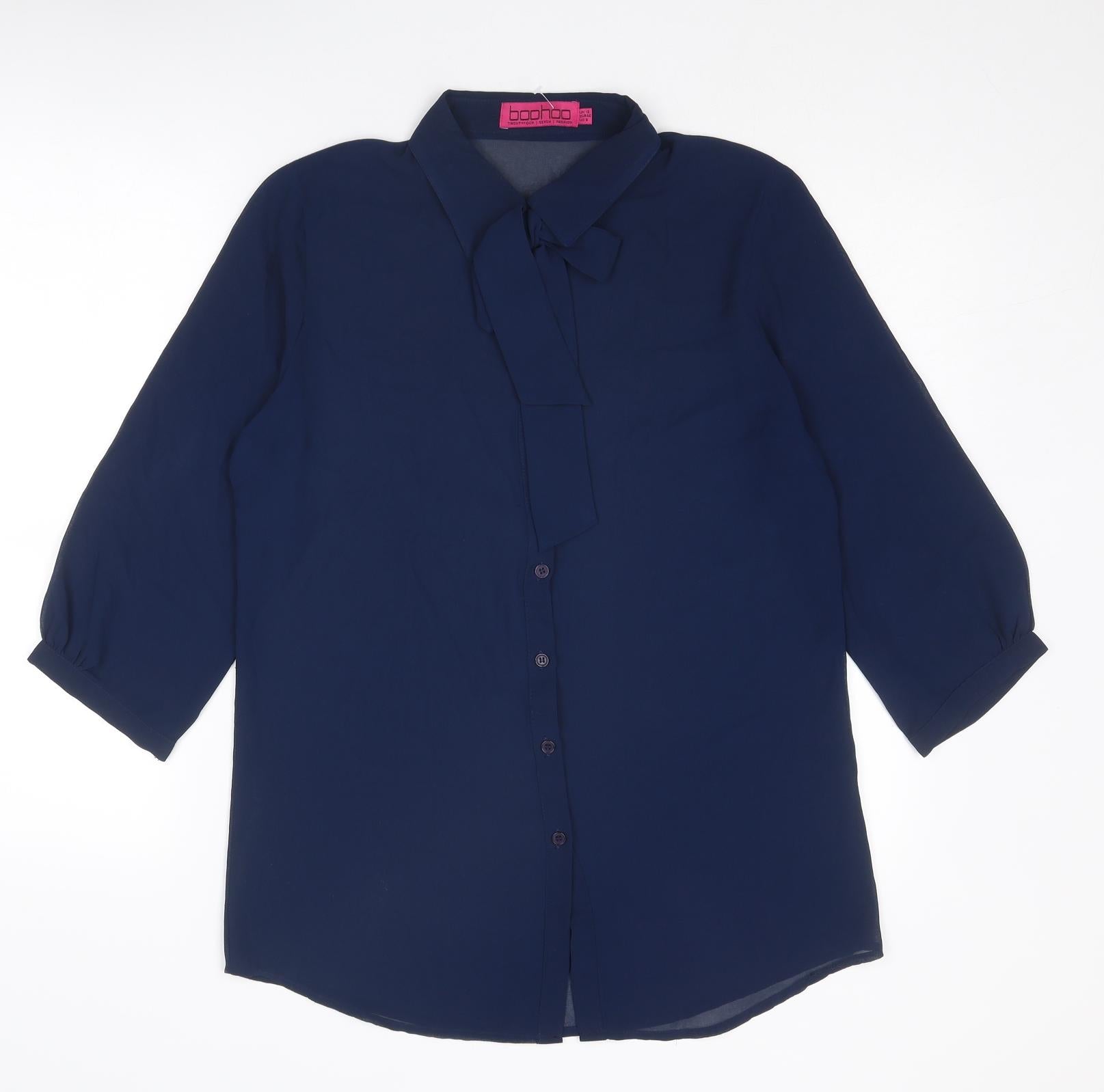 Womens Blue Polyester Basic Button-Up Size 12 Collared