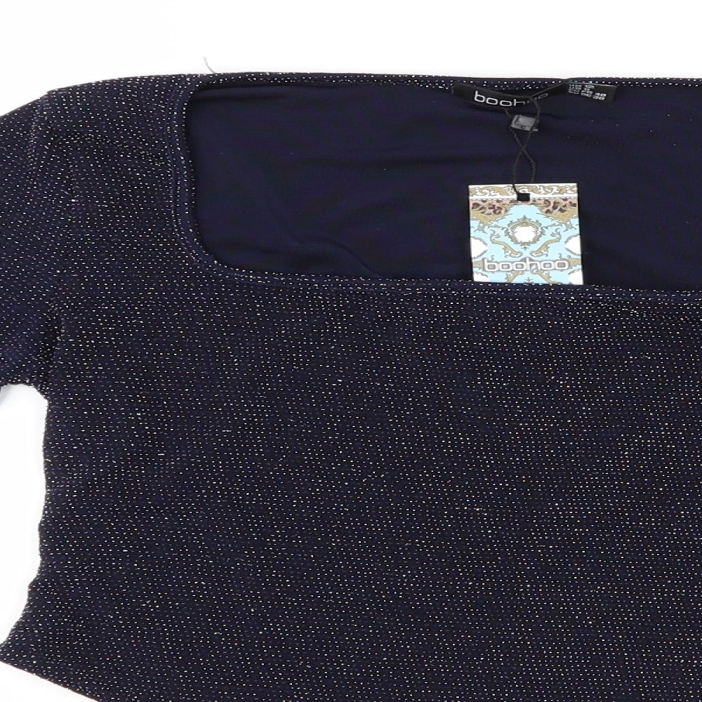Boohoo Women Navy Long Sleeve Scallop Neck Bodysuit UK 12