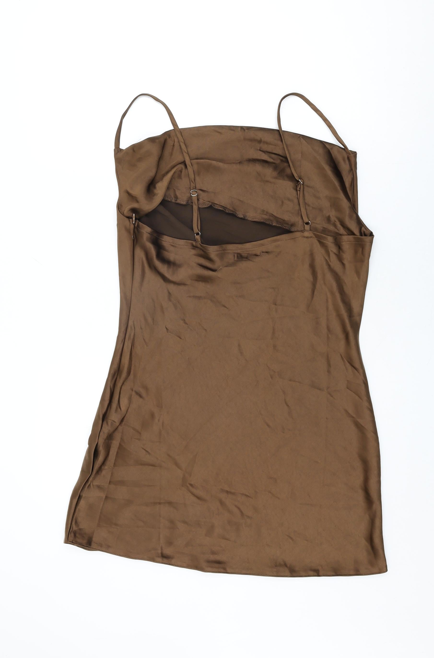 Womens Brown Polyester Mini Size 14 Cowl Neck Zip
