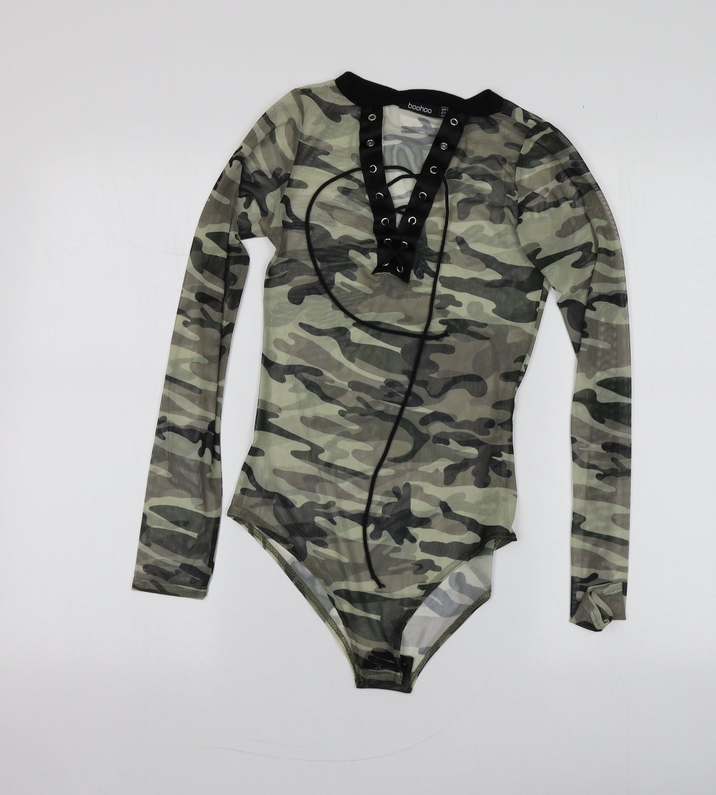 Womens Green Camouflage Polyester Bodysuit One-Piece Size 8