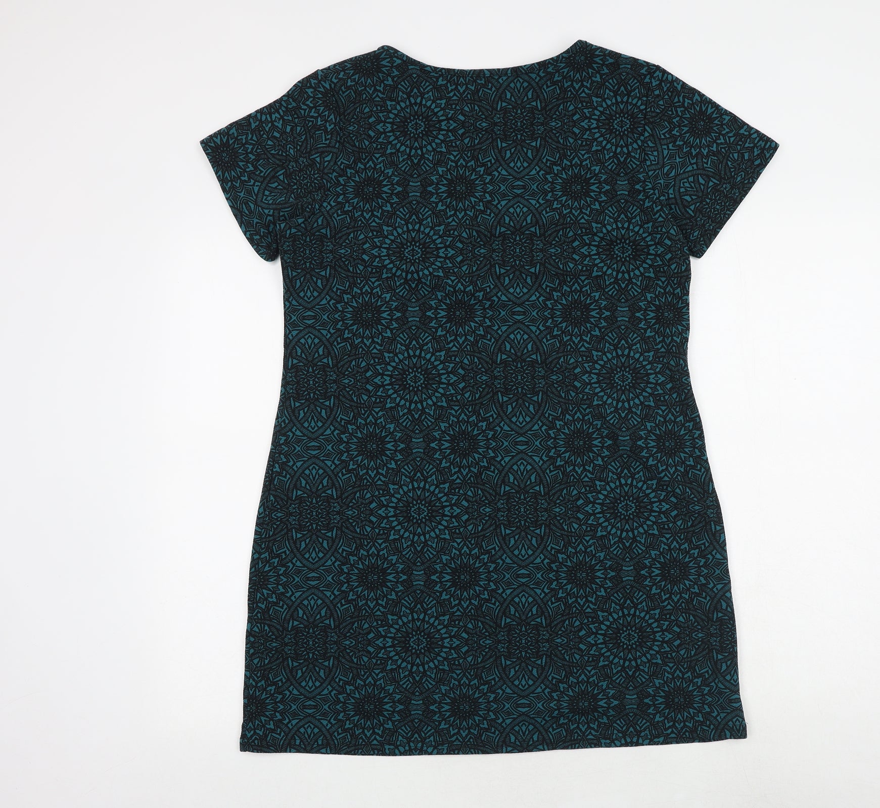 Womens Green Geometric Polyester A-Line Size 14 Round Neck Pullover