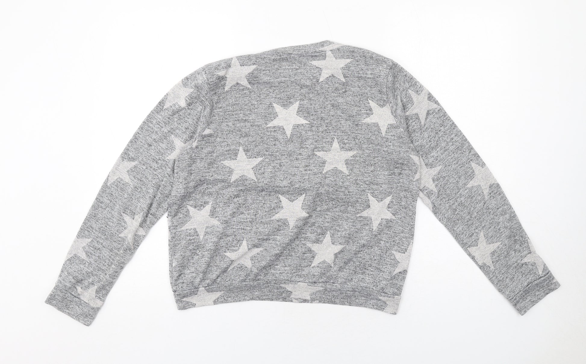 Womens Grey Geometric Polyester Basic T-Shirt Size M Round Neck - Stars