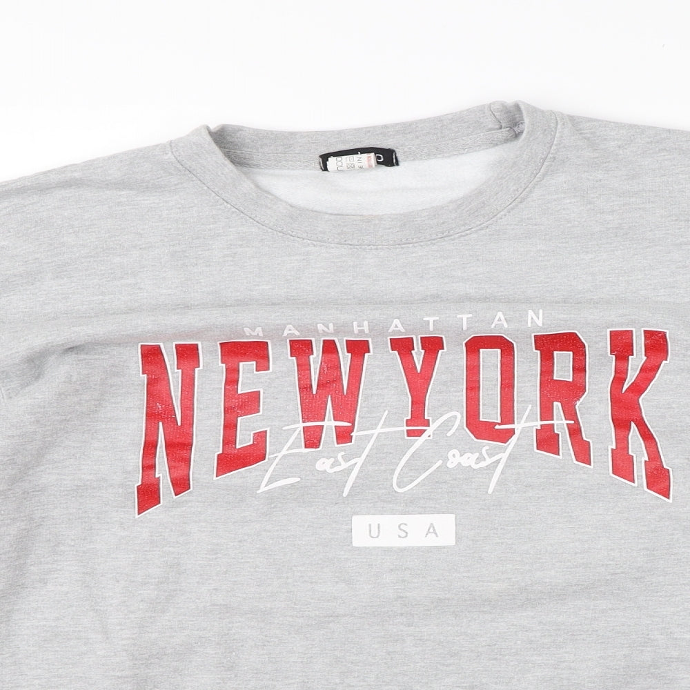 Womens Grey Polyester Pullover Sweatshirt Size M Pullover