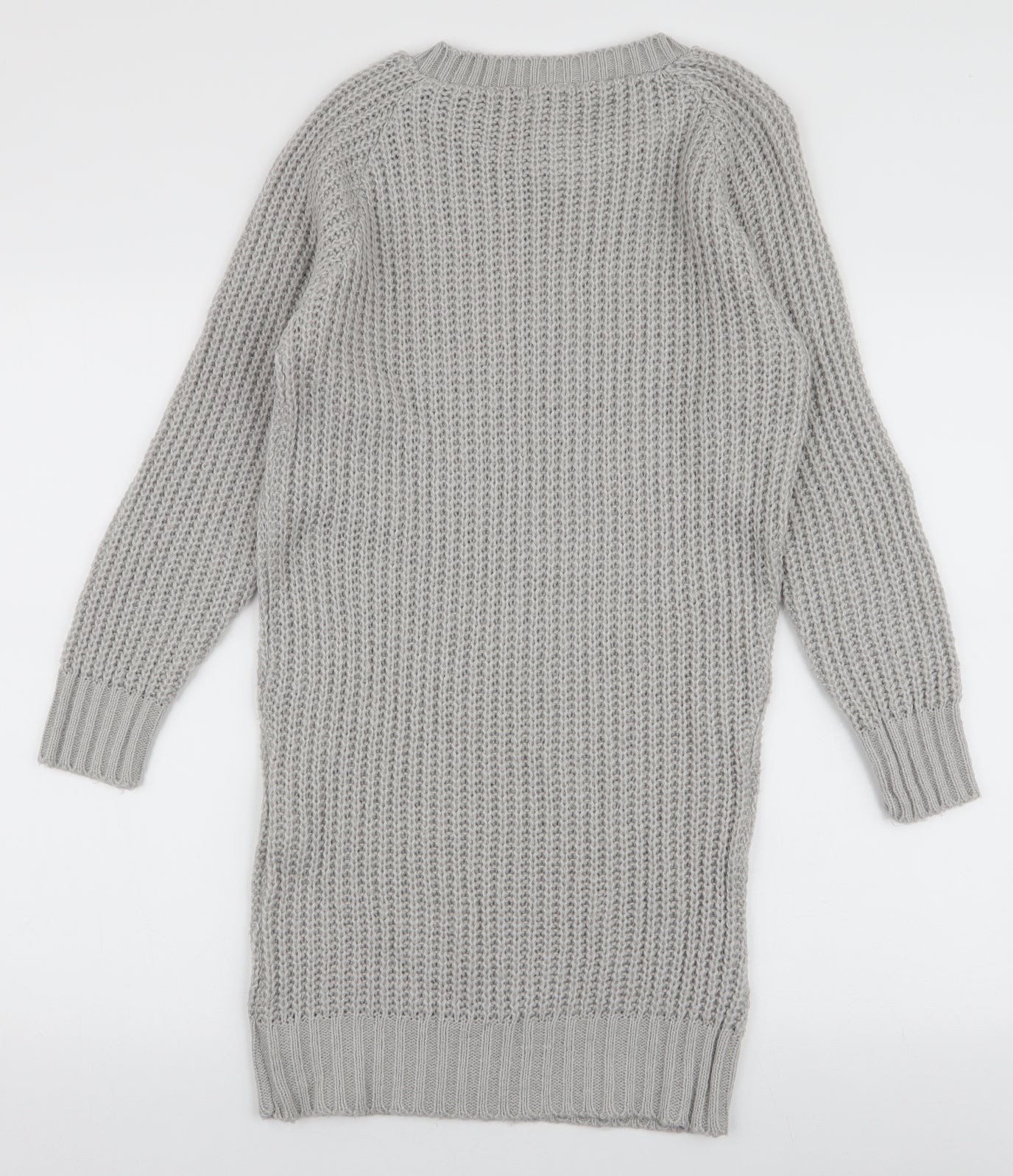 Womens Grey Round Neck Acrylic Pullover Jumper Size M