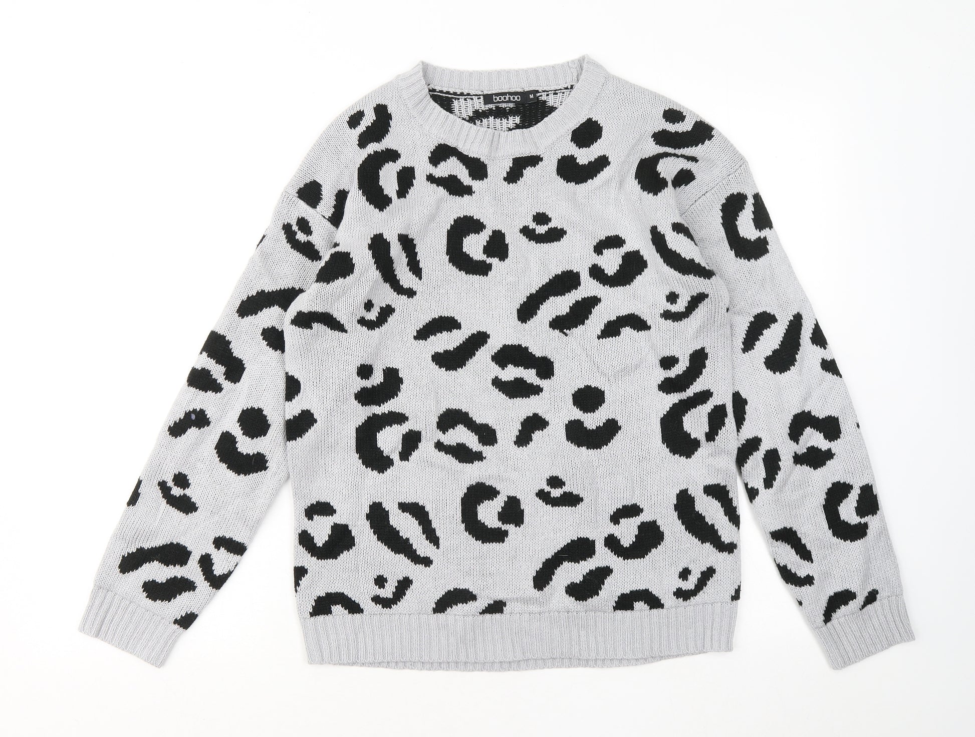 Womens Grey Round Neck Animal Print Acrylic Pullover Jumper Size M