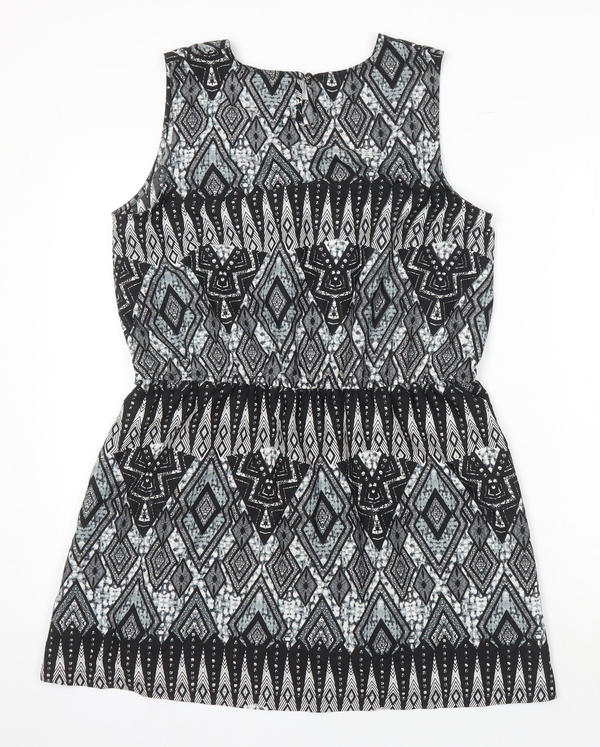 Womens Ivory Geometric Polyester A-Line Size 14 Round Neck