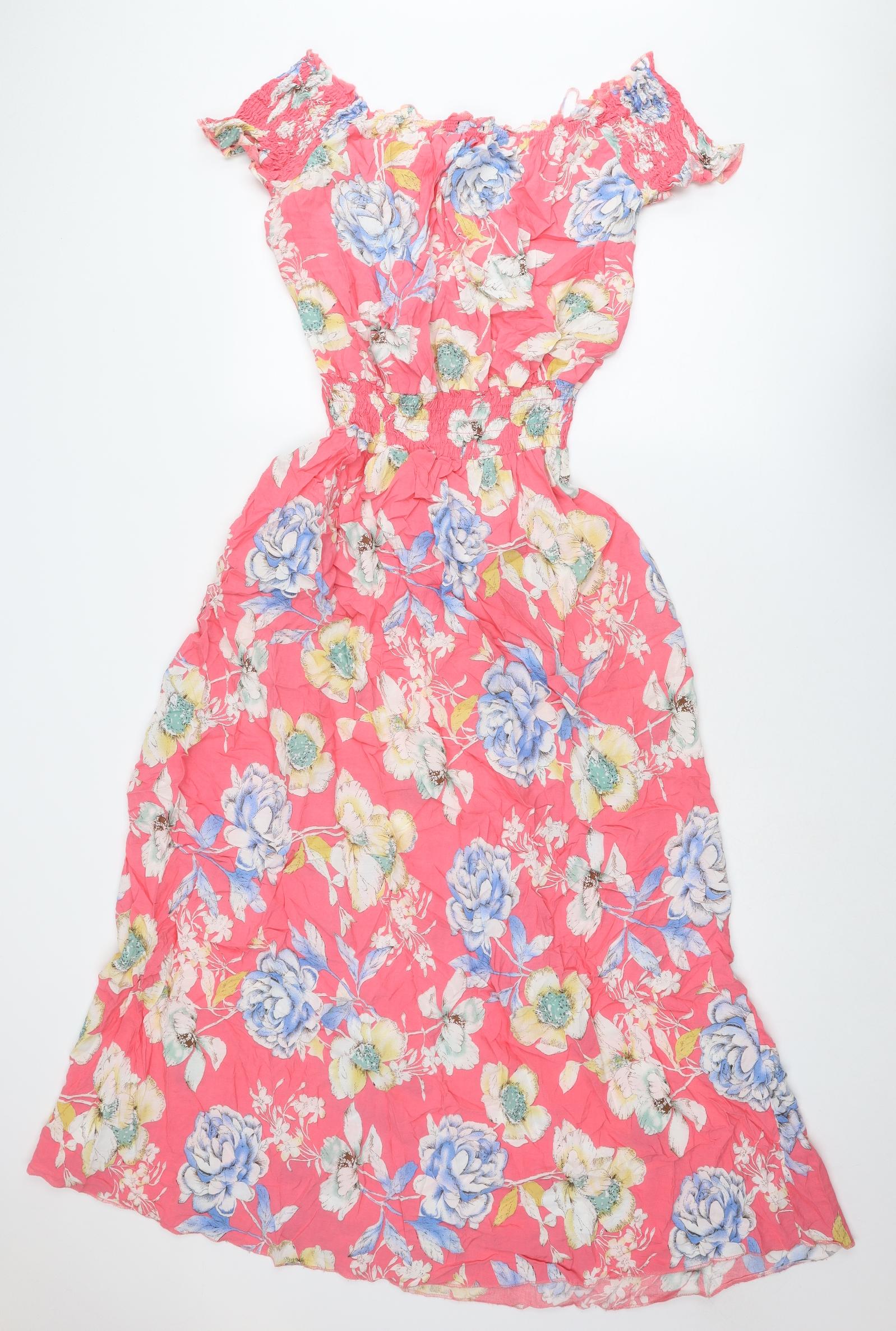 Womens Multicoloured Floral Viscose A-Line Size 18 Off the Shoulder Pullover