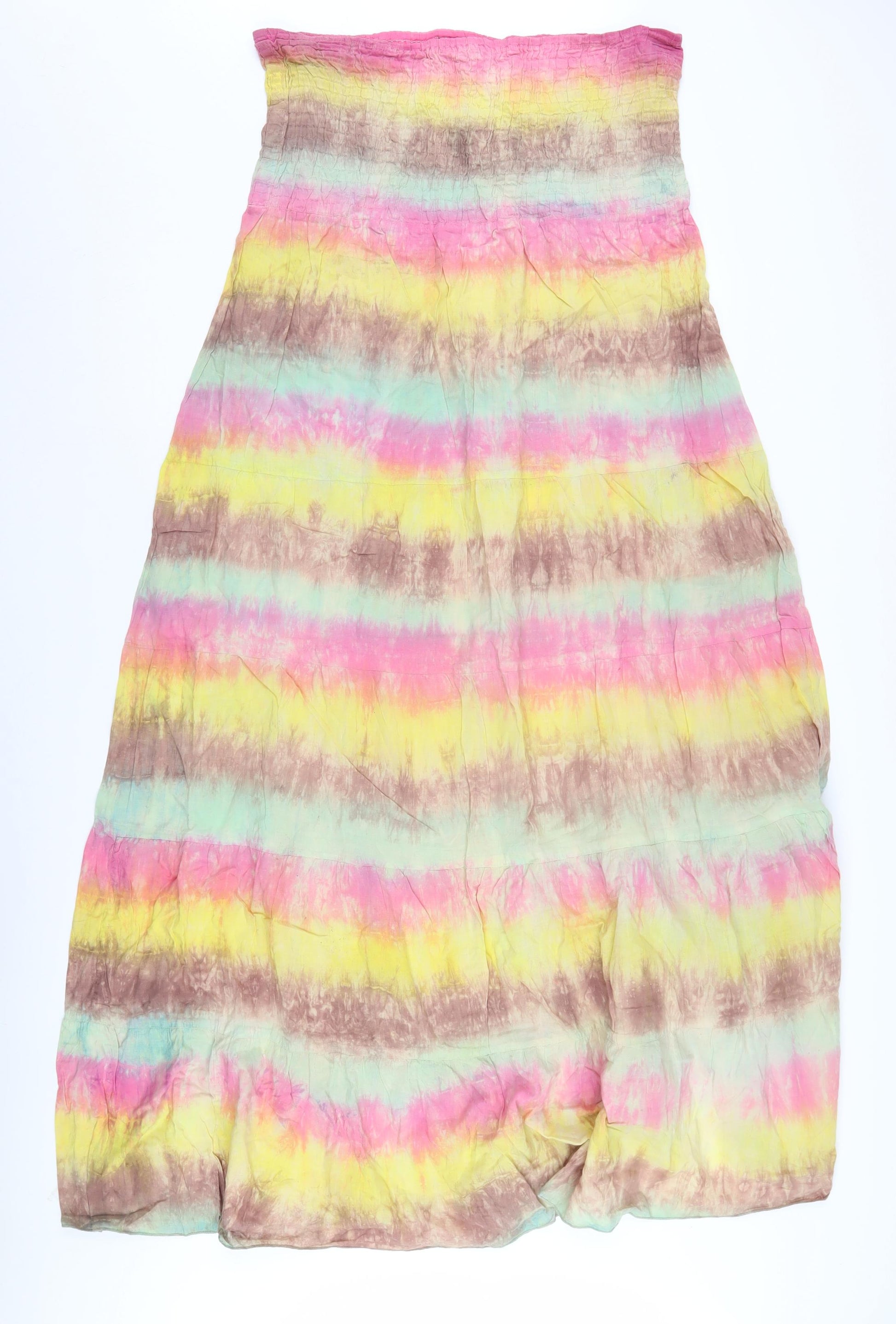 Add a splash of colour to your wardrobe with this delightful Boohoo Women's Strapless Swing Dress. In a vibrant multicoloured tie-dye pattern, this dress is a perfect choice for the warm spring and summer months. The relaxed trapeze & swing style combined with a strapless neckline offers freedom and comfort, making it ideal for both casual outings and cocktail parties. Crafted from 100% cotton, it ensures breathability and ease, allowing you to enjoy every moment with comfort. This woven fabric dress is machine washable, promising easy maintenance and a fresh look every time. With an elastic waist, it effortlessly enhances your silhouette. Ideal for those who appreciate bohemian and colourful themes, this dress promises to make you stand out fabulously. In excellent condition, with no visible defects, it's a garment that adds charm and style to any occasion. Available in size L, perfect for women seeking regular fits, this dress beckons those who are ready to embrace the vibrant energy of the season. Perfect as a unique piece for holidays or garden parties, step into the spotlight with this stunning Boohoo Swing Dress.