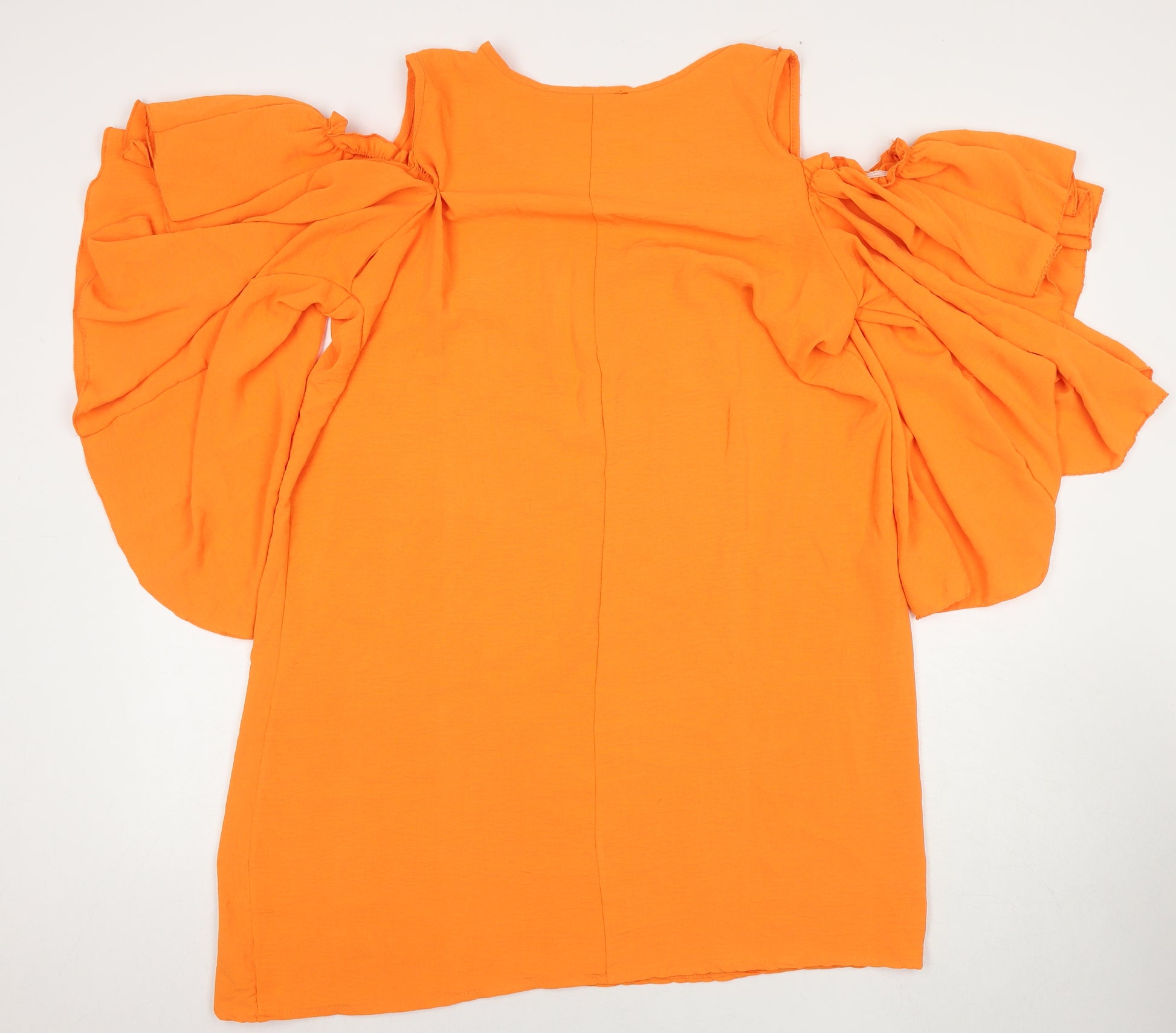 Womens Orange Polyester A-Line Size 18 Round Neck Pullover - Cold Shoulder