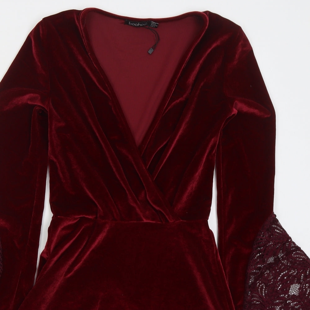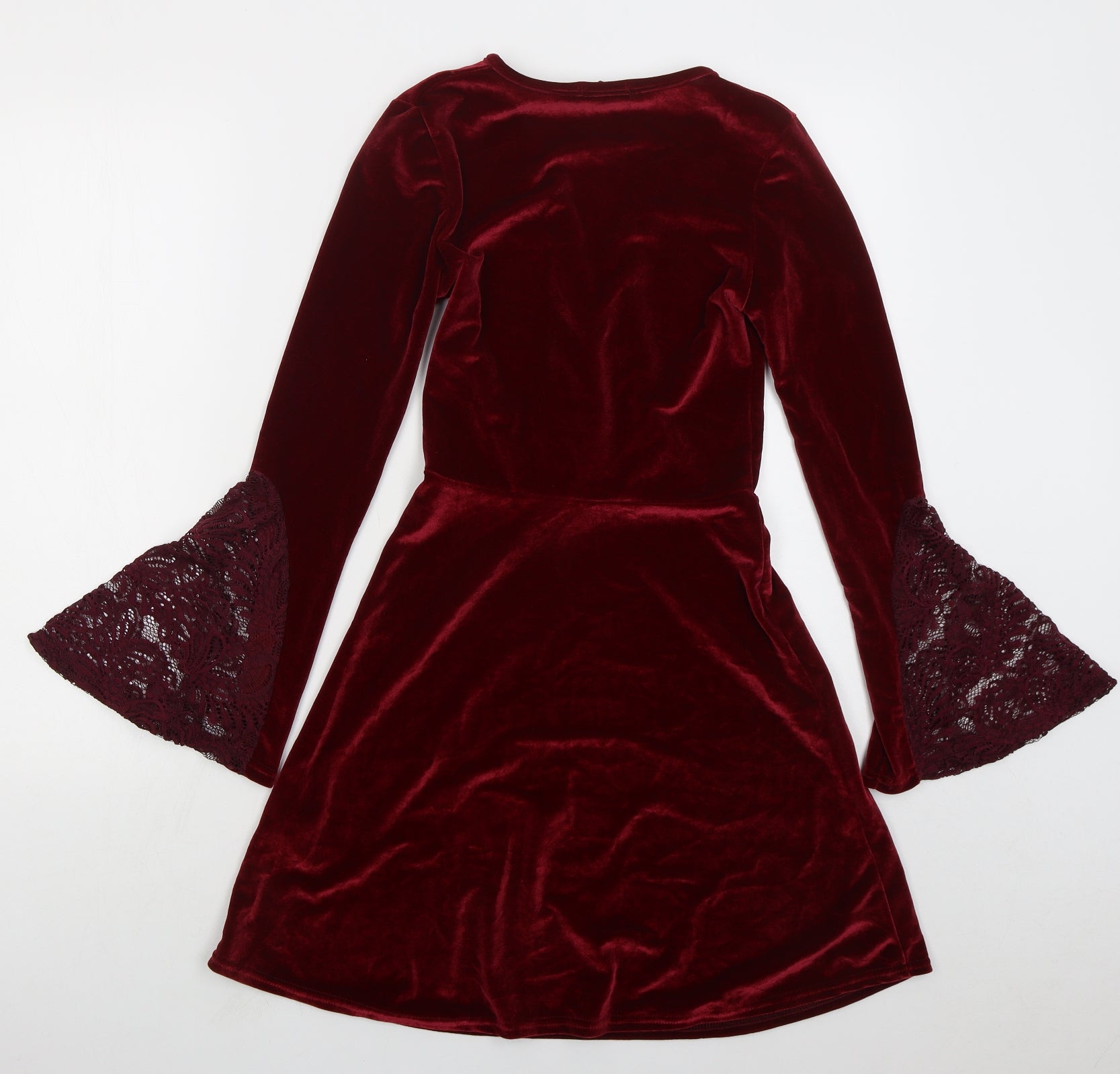 Womens Red Polyester Skater Dress Size 8 V-Neck Pullover