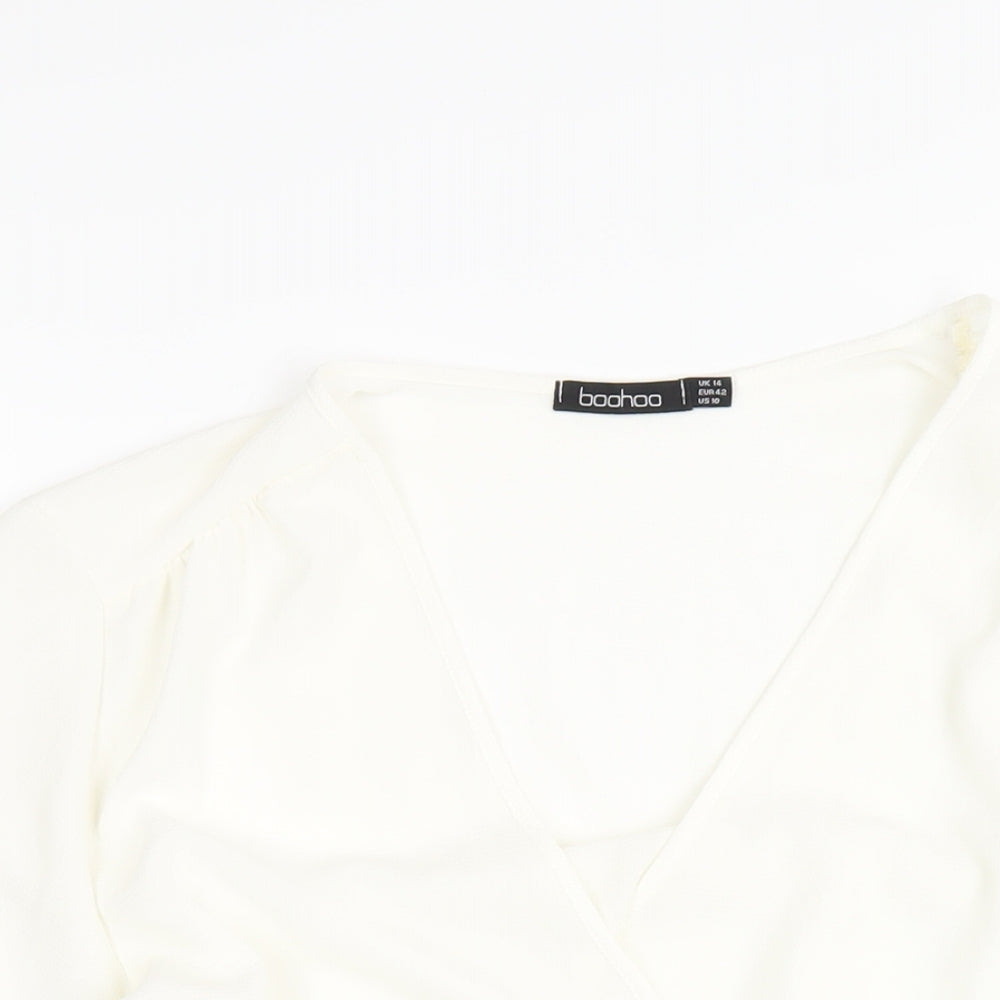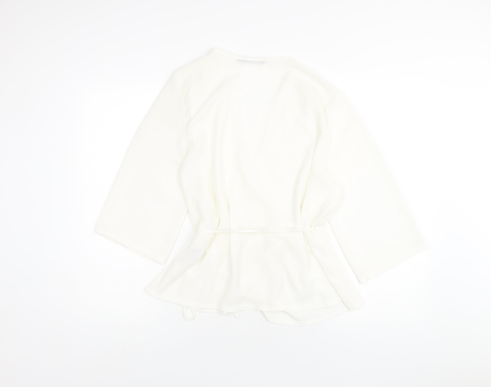 Womens White Polyester Wrap Blouse Size 14 V-Neck