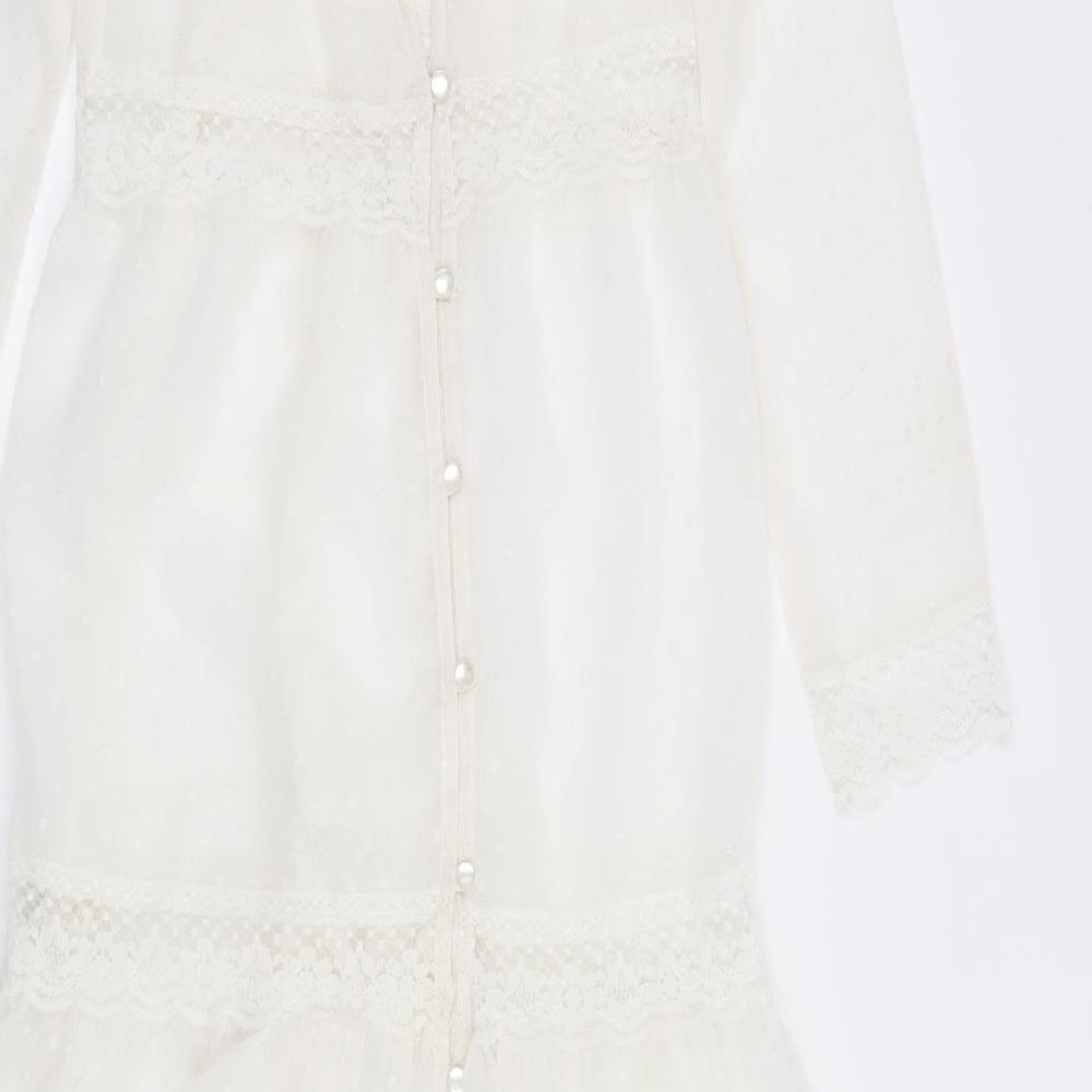 Wednesday's Girl Womens White Polka Dot Viscose Fit & Flare Size S V-Neck Button