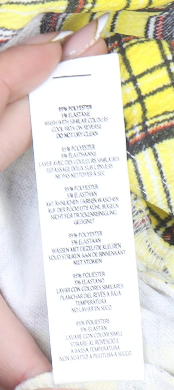 Add a vibrant touch to your casual wardrobe with this eye-catching yellow check bodysuit from Boohoo. Designed for the confident and fashion-forward woman, this stylish one-piece features a bold plaid pattern in shades of yellow, white, and grey, finished with a square neckline that enhances your décolletage. Crafted from a soft and stretchy woven fabric blend of polyester and elastane, it provides all-day comfort while maintaining a sleek and flattering slim fit. The long sleeves make it a perfect transitional piece, ideal for layering or wearing solo through spring, summer, and autumn. The bodysuit fastens with a secure snap closure at the bottom, ensuring a smooth, tucked-in look that pairs beautifully with high-waisted jeans, skirts, or tailored trousers. Whether you’re out for a casual brunch, running errands, or heading to a laid-back evening get-together, this bodysuit adds a dose of modern edge and effortless chic to your outfit. Machine washable and easy to care for, it’s both practical and statement-making. In excellent condition with no visible wear, this Boohoo piece is an affordable way to elevate your everyday wardrobe essentials. A perfect mix of comfort, colour, and cool-girl style — get ready to turn heads wherever you go.