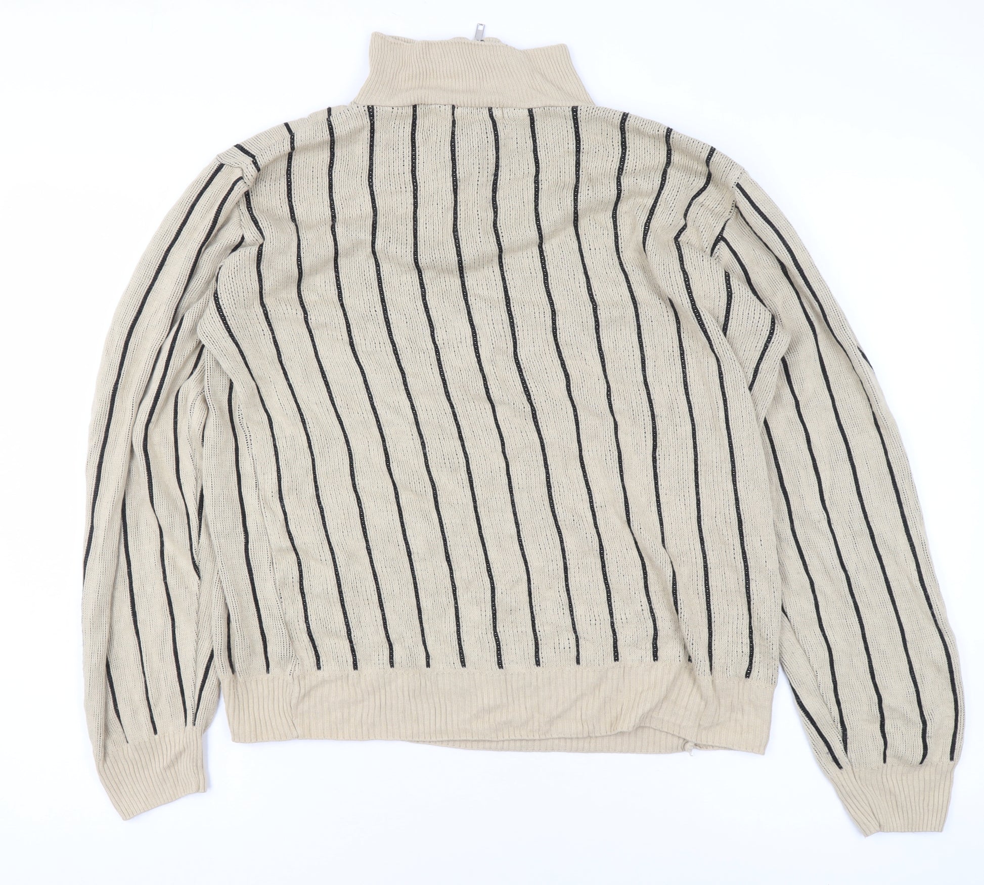 Men's Beige Striped 1/2 Zip Knit Sweatshirt Size S