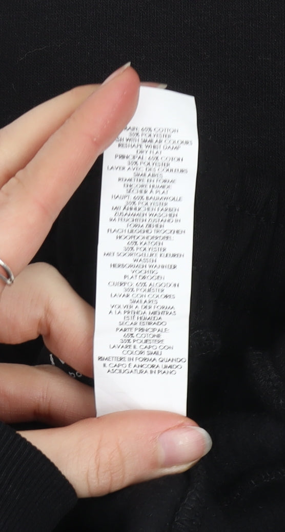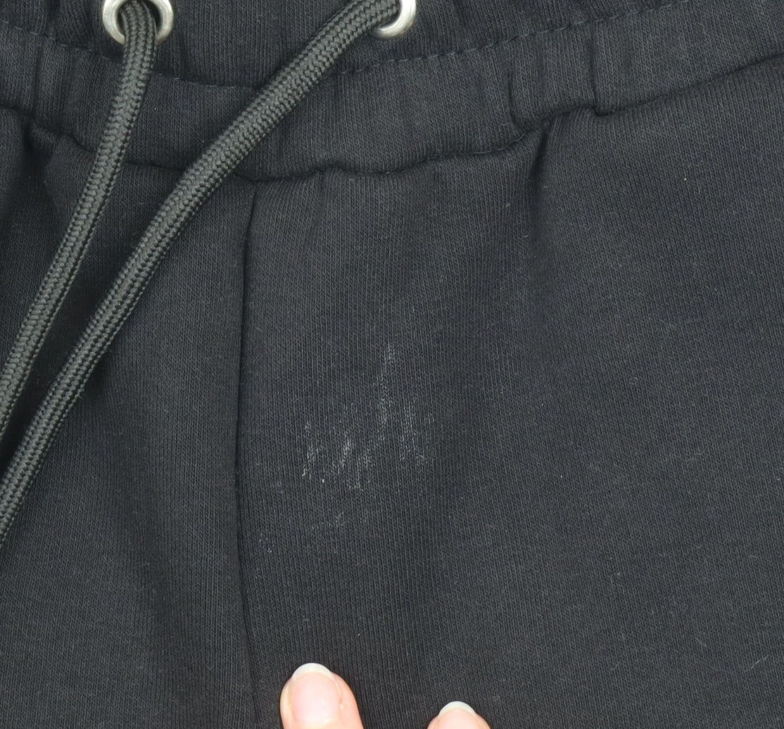 Stay stylish and comfortable with these boohooMAN men's black jogger trousers. Crafted from a soft fleece fabric composed of 65% cotton and 35% polyester, they offer a perfect blend of warmth and breathability—ideal for lounging, workouts, or casual everyday wear. Featuring a classic elastic waistband with a drawstring closure, these joggers provide a secure, adjustable fit. The tapered leg design gives a clean, athletic look, while the elasticated cuffs add to the comfort and fit. Branded with subtle white text detail on the thigh, these joggers merge modern streetwear appeal with practicality.Designed for men, this regular fit ensures ease of movement, whether you’re relaxing at home, heading to the gym, or running errands. The minimalistic black colour makes them easy to style with hoodies, T-shirts, or trainers for a laid-back, sporty outfit. Breathable and machine washable, they’re made for convenience and longevity. The joggers also come with handy pockets, maintaining function as well as form.The material balance of cotton and polyester ensures soft-touch comfort combined with durable wear resistance, keeping you cosy in cooler seasons like autumn, spring, and winter. Although gently used and showing a faint mark near the pocket, they remain in good overall condition, offering excellent value for casual or active lifestyles.These boohooMAN joggers are perfect for anyone looking for affordable comfort and relaxed streetwear style. A must-have wardrobe staple for those who appreciate easy-going athleisure fashion with a modern edge. Grab them today and enjoy everyday comfort with effortless versatility.