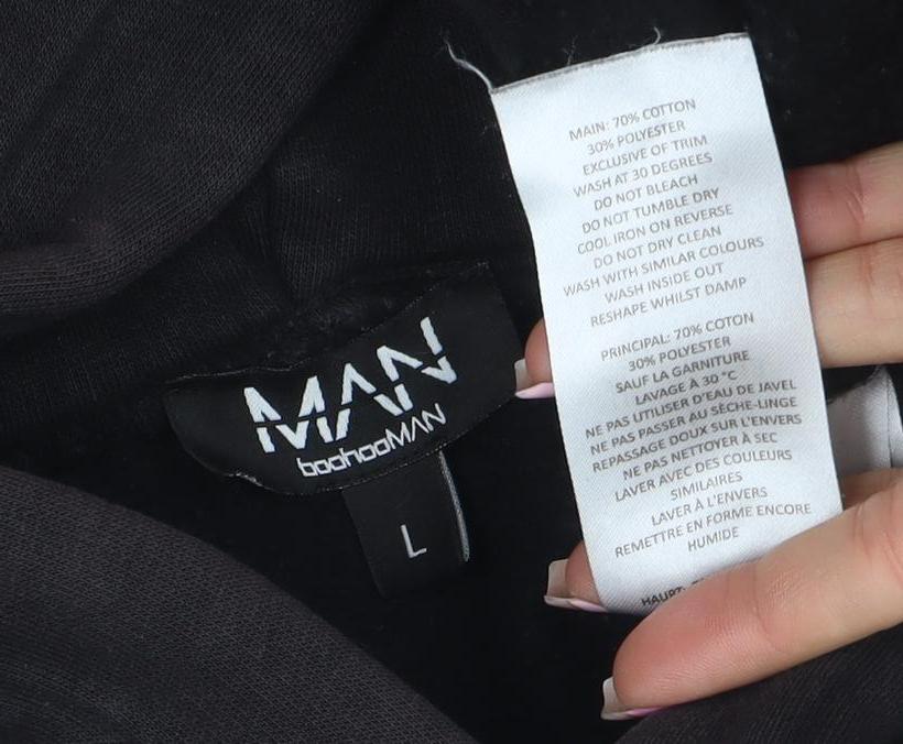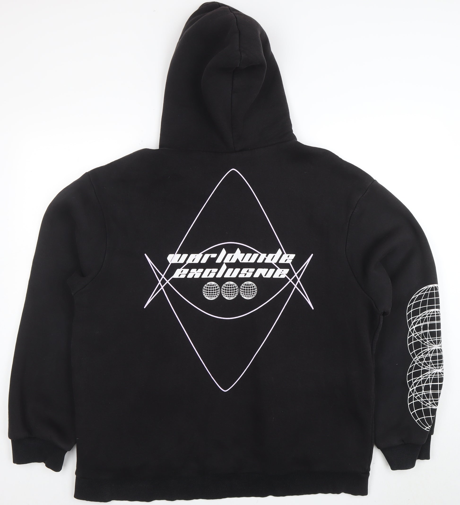 Step up your casual wardrobe with this BoohooMAN men's black pullover hoodie, perfect for everyday wear and adding a bold statement to your streetwear collection. Designed in a comfortable regular fit, it features an eye-catching global graphic print on the front and back with striking white and turquoise tones, offering an urban-inspired look ideal for modern style enthusiasts. The classic hoodie silhouette includes a soft hood, ribbed cuffs and hem, and two practical front pockets for added functionality. Crafted from a high-quality cotton and polyester fleece blend, it ensures warmth while maintaining a breathable and cosy feel, making it ideal for layering through autumn, winter, and spring. This hoodie boasts All-Seasons versatility and comfort with quality construction and signature BoohooMAN branding. Whether paired with jeans, joggers, or trainers, it delivers a confident and effortlessly cool aesthetic. Machine washable for easy care and designed with durable stitching, this hoodie is made to last. The pockets and bold logo details add a distinctive edge that highlights BoohooMAN’s popular take on everyday streetwear style. In excellent condition with minimal signs of previous wear, this hoodie is a premium choice for those who value both trend and utility. Ideal for casual outings, weekend relaxation, or city adventures, this item provides warmth without sacrificing style. Secure this BoohooMAN graphic hoodie today – the perfect fusion of comfort, statement design, and versatile fashion that will elevate your off-duty look every time you wear it.