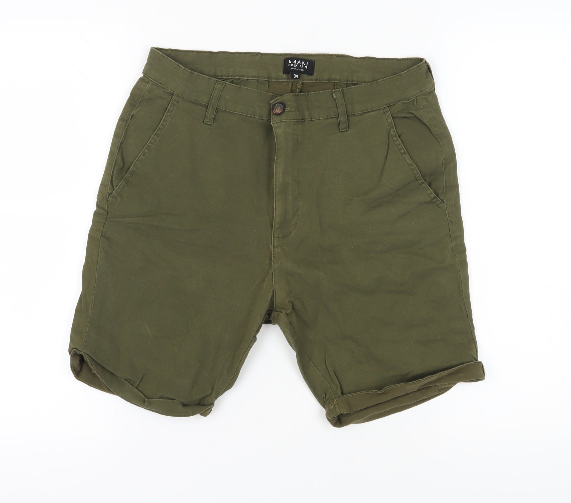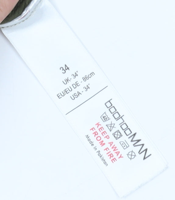 Elevate your everyday casual wardrobe with these versatile green chino shorts from boohooMAN. Perfectly crafted for comfort and style, these shorts promise to be your go-to piece for the warmer months. Styled in a men's size 34 with a regular fit, they sit comfortably on the waist, thanks to their 86 cm waist size. The rich green hue adds a fresh pop of colour to any ensemble, making them ideal for a walk in the park, a beach outing, or a casual day with friends.Designed with practicality in mind, these chino shorts feature convenient slash pockets, allowing you to keep your essentials close. The flat front with button and zip closures ensures a clean, sleek look, suitable for a relaxed yet refined appearance. Made from a breathable cotton-elastane blend (98% cotton, 2% elastane), they provide the perfect stretch for optimal movement, while maintaining their shape.These shorts are perfect for spring and summer occasions, reflecting a timeless casual aesthetic. Machine washable for easy care, they ensure longevity and ease of use. With their contemporary regular fit and seamless integration into any casual wardrobe, these shorts make a fabulous gift or a worthy addition to your collection.Don’t miss the chance to own a pair of shorts that brings together chic style, comfort, and functionality. Ideal for men who appreciate quality and refined fashion choices.
