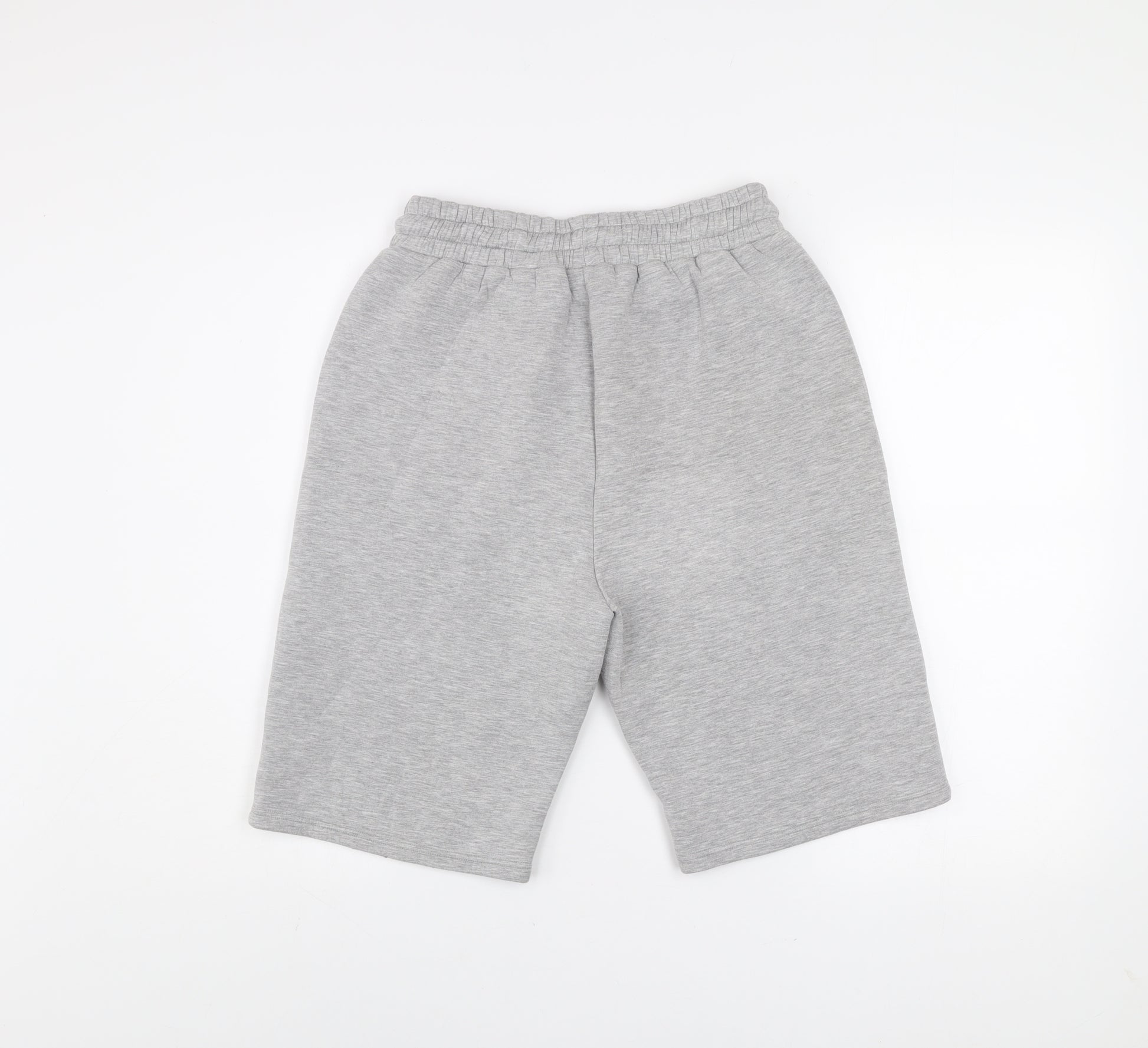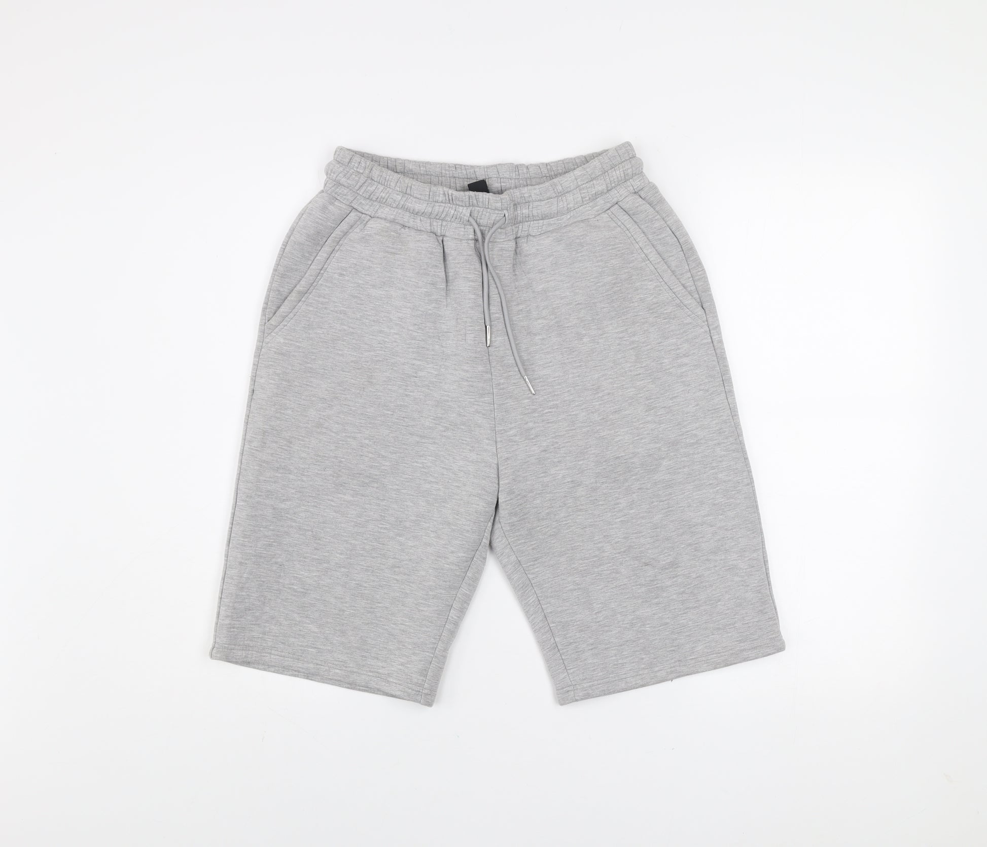Update your off-duty or training style with these versatile boohooMAN men's grey athletic sweat shorts in size Small (Tall fit). Crafted from a soft jersey fabric blend of 80% viscose, 18% nylon, and 2% elastane, these shorts deliver the ideal balance of comfort, flexibility, and breathability. Designed in a classic pull-on style, they feature an elastic waist with an adjustable drawstring for a secure fit and convenient side pockets to store your essentials during workouts or everyday wear. The mid-weight fabric makes them a great choice for warmer days or indoor gym sessions, offering unrestricted movement whether you're running, lifting, or relaxing. Their clean, no-pattern design ensures they pair easily with any tee, tank, or hoodie, making them an effortless addition to your athleisure rotation. Suitable for both casual and activewear occasions, these grey sweat shorts reflect a simple yet sporty style that appeals to those who value both function and fashion. Perfect for gym sessions, running, yoga, or simply lounging at home, they ensure all-day comfort with a classic relaxed fit. Machine washable for easy care, these shorts are a durable and practical choice to keep you moving comfortably throughout the seasons. In excellent pre-owned condition with minimal signs of wear, they have been carefully inspected to ensure quality and longevity — ready to add understated style and comfort to your activewear wardrobe.