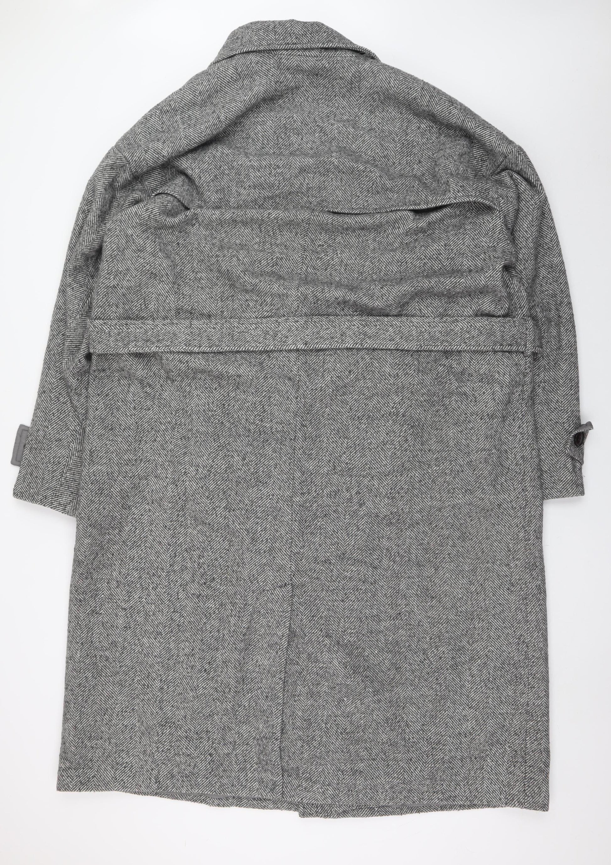 Elevate your outerwear collection with this stylish boohooMAN men’s grey herringbone trench coat, designed for both comfort and sophistication. Crafted in a quality wool blend fabric, this long coat blends the classic charm of heritage tailoring with the practicality required for modern wear. The distinctive herringbone pattern gives the piece a smart, refined texture that's timeless and effortlessly stylish. Designed in a regular fit, it offers ample layering room without compromising on structure, ensuring you stay warm and comfortable throughout the cooler seasons. The belt fastening allows you to adjust your silhouette for a more defined or relaxed look, while the double-button closure provides added security and a touch of traditional detail. Fully lined for a smooth finish and added warmth, the coat features practical front pockets for convenience and a spread collar that adds to its clean, confident aesthetic. Perfect for business, workwear, or casual outings, this coat transitions seamlessly from office-ready to weekend sophistication. In shades of classic grey, it will easily coordinate with your wardrobe staples, from tailored trousers to denim. Constructed with 90% polyester and 10% wool, the outer shell delivers warmth, structure, and durability, while the polyester lining ensures a comfortable interior. This boohooMAN coat combines masculine elegance with daily practicality – a wardrobe essential for the autumn and winter months. In excellent condition with only light general wear, it’s a great opportunity to own a versatile, premium-looking trench coat at a fraction of the price of high-end designer pieces. Ideal for the man seeking both fashion and function, it’s ready to complement any refined wardrobe. Grab this classic herringbone wool-blend coat today and bring effortless style to your seasonal look.