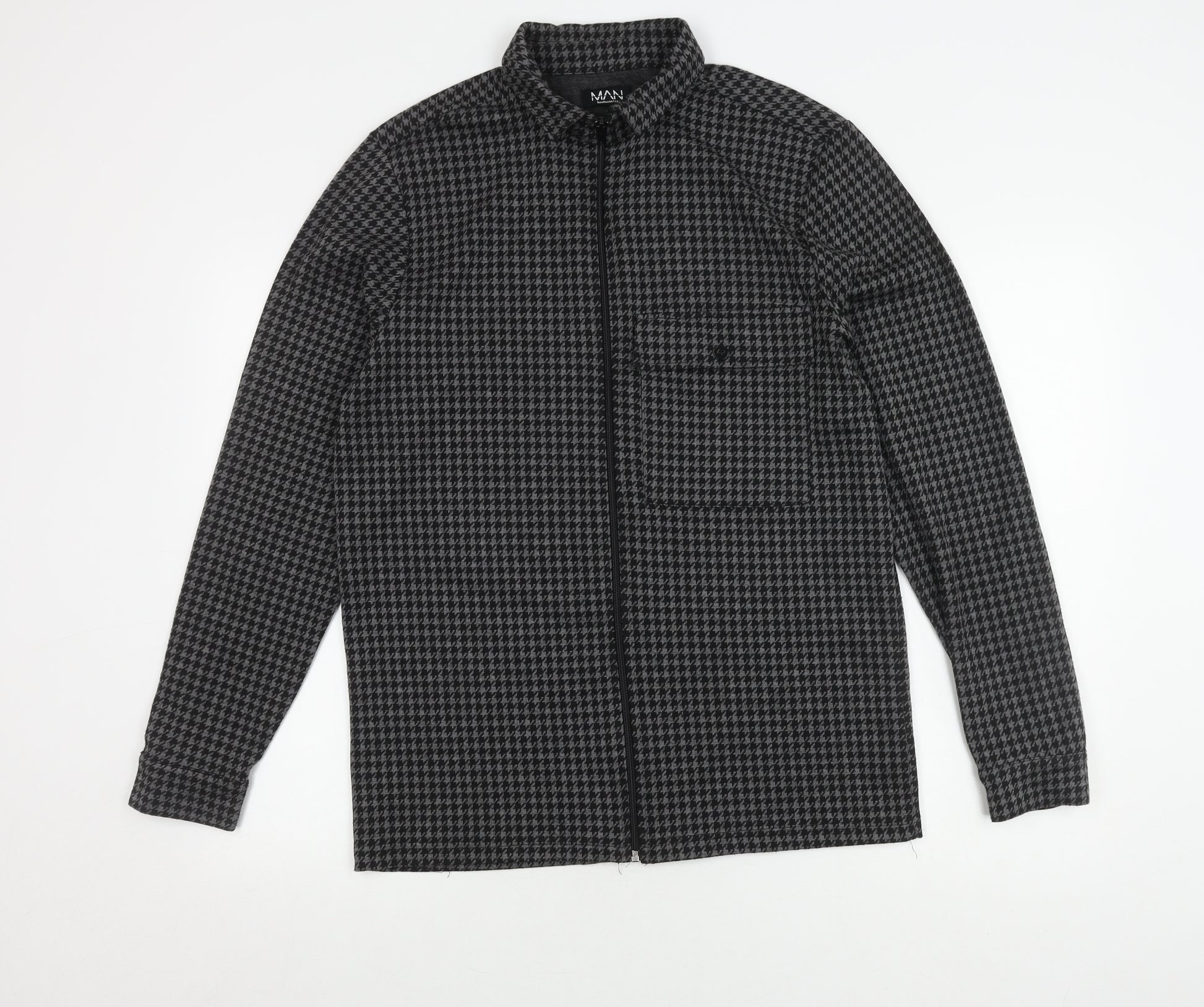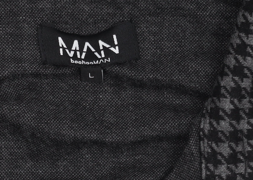 Elevate your wardrobe with this stylish boohooMAN jacket, designed for the contemporary gentleman. Crafted in a versatile grey houndstooth pattern, this mid-length jacket combines a classic check with modern sensibilities, making it a perfect addition to your autumn and winter wardrobe. With a regular fit and stand-up collar, it offers comfort and ease of wear. Made from a durable blend of 70% polyester and 30% viscose, this jacket promises resilience and a sleek look. The full zip closure makes it easy to layer over your favourite outfits, whether you're off to a casual gathering or running errands around town. This boohooMAN jacket is machine washable, ensuring that maintenance is hassle-free. Despite being pre-owned, it maintains an excellent condition, showing minimal signs of wear and offering outstanding value for style-conscious individuals. Ideal for casual occasions, this jacket pairs effortlessly with jeans or chinos, adding a touch of sophistication to any ensemble. Embrace fashion-forward outerwear with this boohooMAN piece, where timeless design meets modern functionality.
