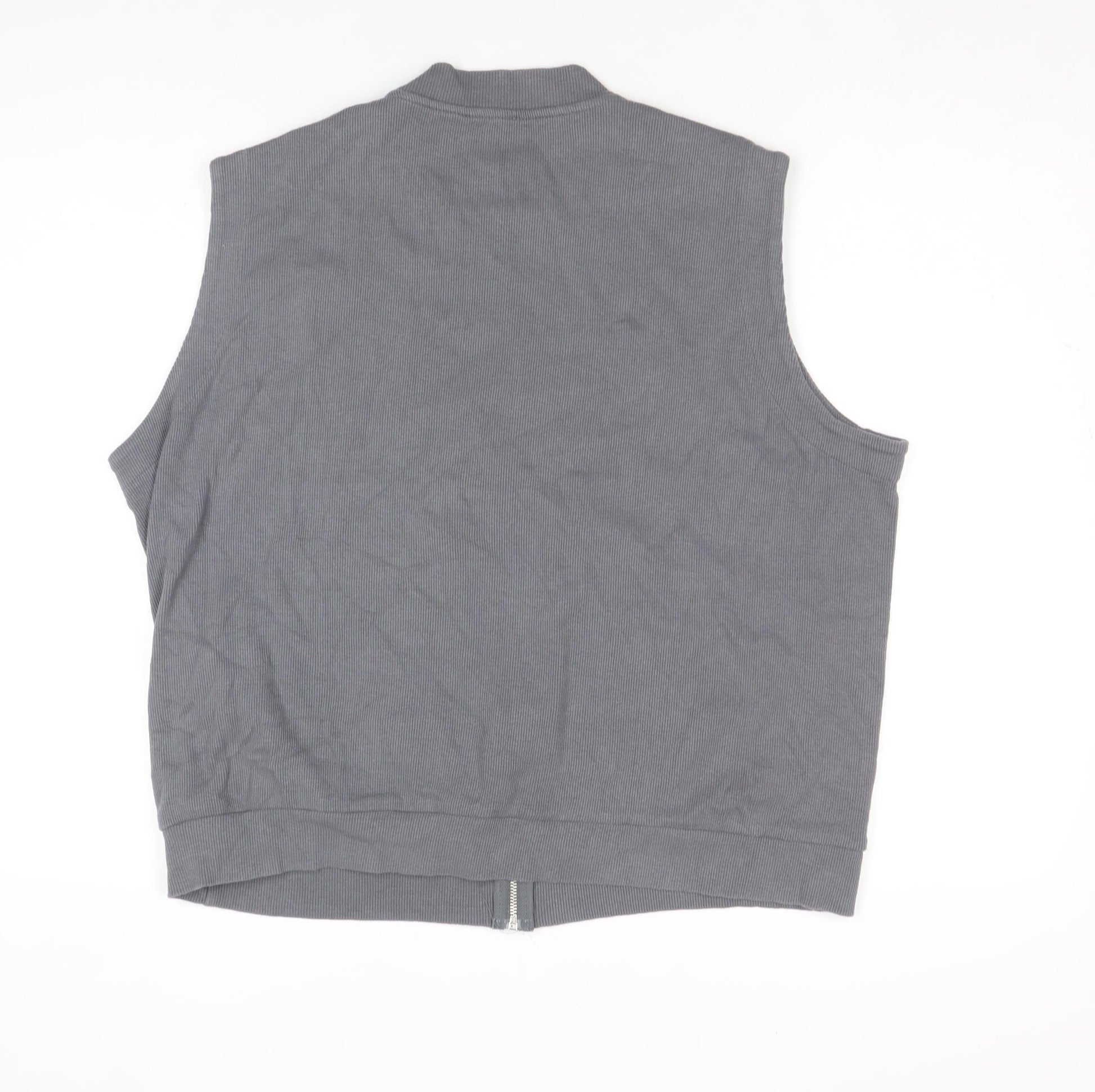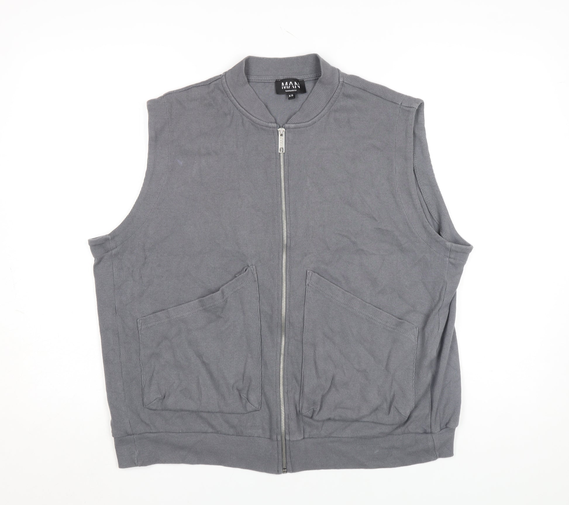 Elevate your layering game with this sleek boohooMAN men's grey zip-up waistcoat in size XS. Crafted from a soft and breathable cotton jersey with a touch of elastane for flexibility, this versatile piece brings modern streetwear appeal to your casual wardrobe. The full-zip fastening makes it easy to throw on over graphic tees or lightweight sweaters, while the stand-up collar delivers a touch of athletic-inspired style. Two front pockets add both practicality and detail, perfect for keeping your hands warm or carrying small essentials on the go. Designed in a clean, minimalist silhouette, the waistcoat’s ribbed hem ensures a comfortable and secure fit, giving it an effortlessly smart finish. Ideal for layering through spring days, summer evenings, or mild autumn weather, this waistcoat delivers a lightweight feel without sacrificing comfort. Its plain grey hue complements any outfit, making it an easy match with jeans, joggers, or chinos. Whether you’re heading for a casual day out, a relaxed weekend event, or simply adding depth to your everyday look, this boohooMAN waistcoat offers the right balance between laid-back and stylish. Machine washable for fuss-free care, it makes a practical and affordable addition to any contemporary wardrobe. In excellent used condition with no visible flaws, this piece remains ready for plenty more wear. Keep it simple, versatile, and comfortable with this on-trend grey waistcoat that blends fashion-forward design with everyday ease. The perfect throw-on layer when you need that extra edge — lightweight, fitted, and effortlessly cool.