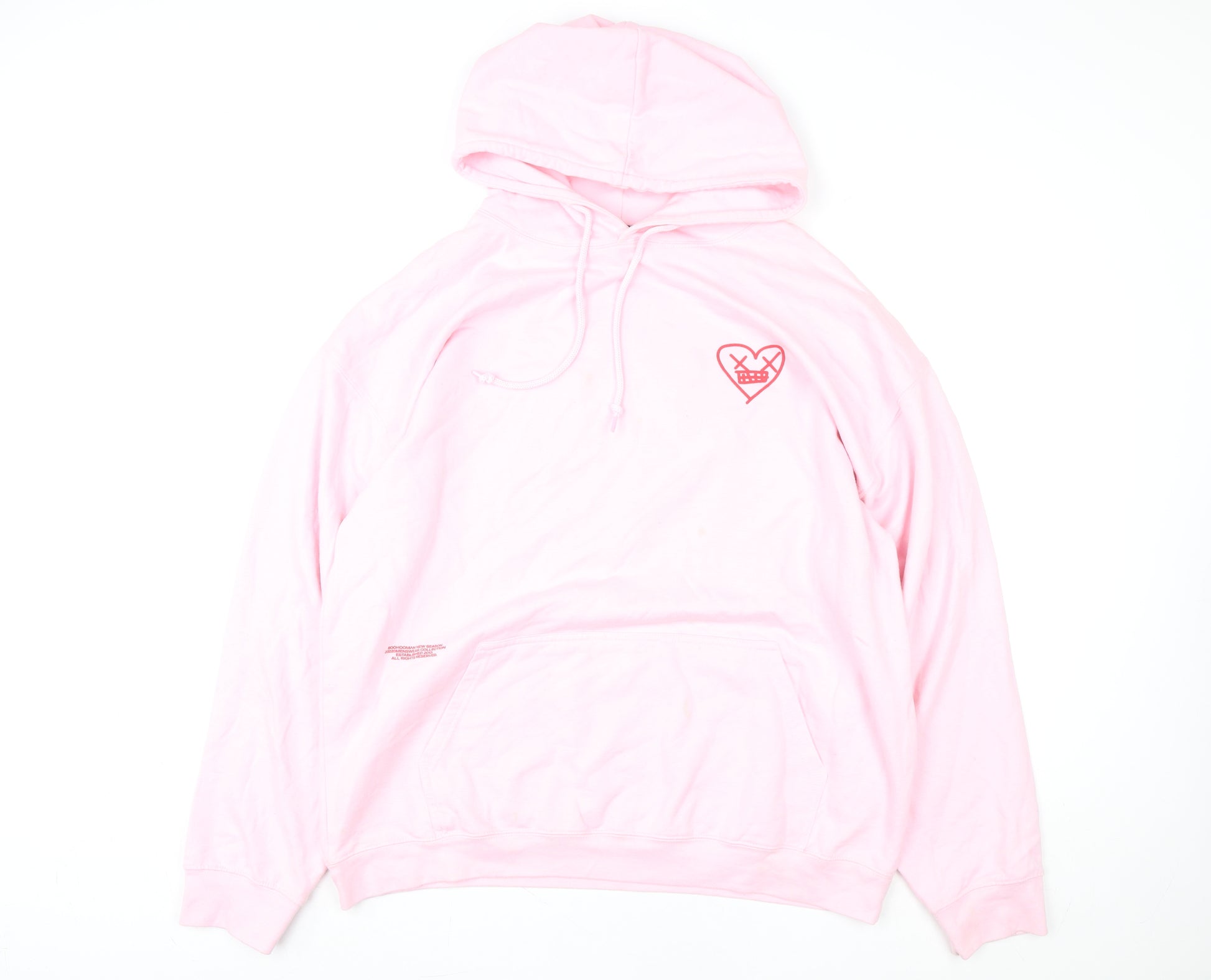 Pink Heart Graphic Pullover Hoodie L Unisex Adults