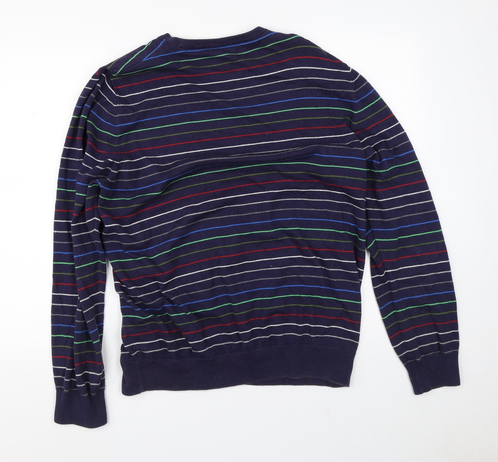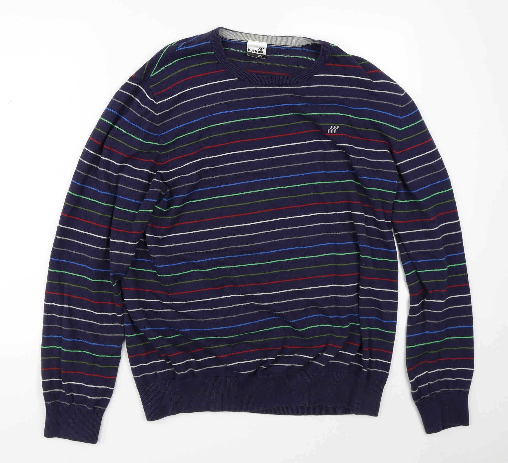 Mens Blue Striped Cotton Pullover Sweatshirt Size 2XL