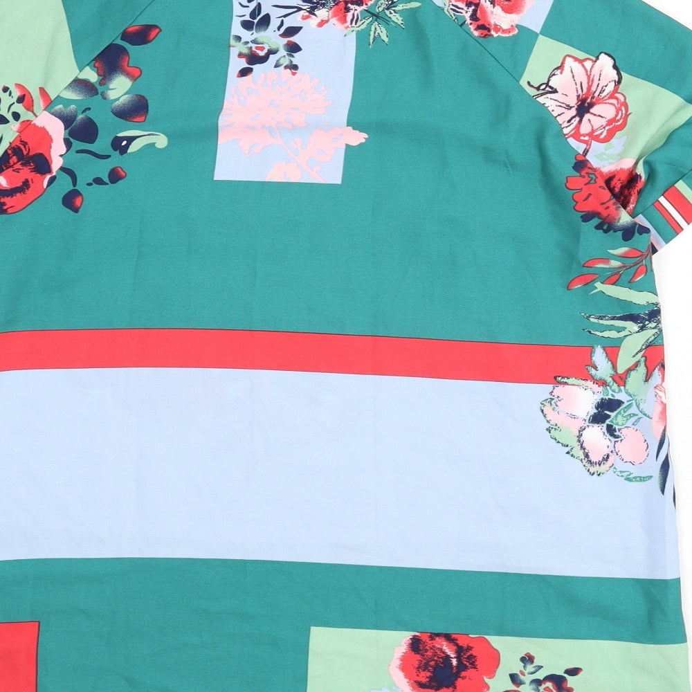 Womens Multicoloured Geometric Polyester Basic Blouse Size 16 Round Neck - Floral, Stripe, Colour Block
