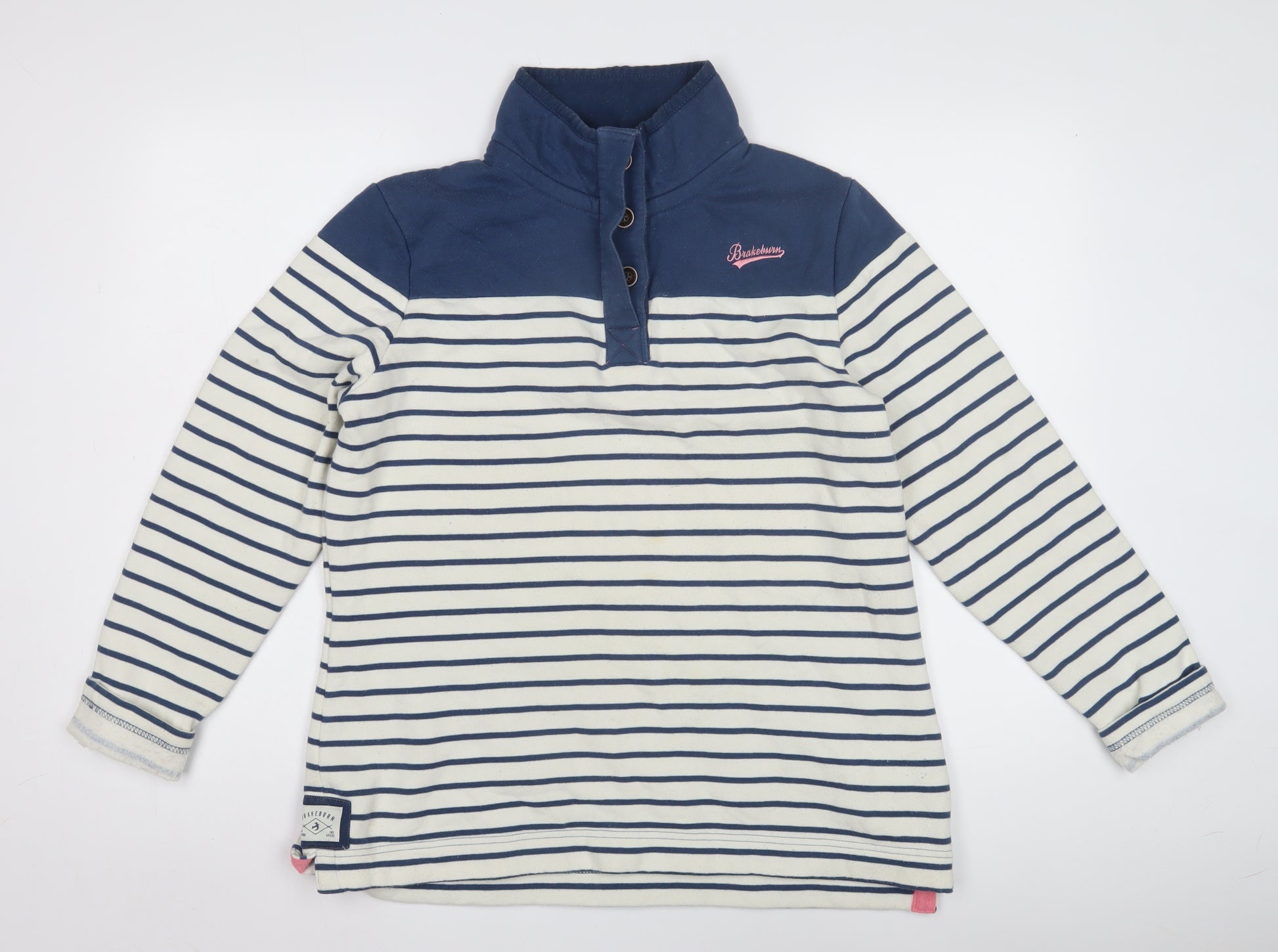 Embrace a timeless style with this Brakeburn women's Henley sweatshirt, perfectly designed for casual outings in cooler seasons. Featuring a classic collared neckline and button accents, this blue-striped sweatshirt exudes a nautical charm. Made from a comfortable blend of 60% cotton and 40% polyester, it ensures durability and softness, making it ideal for long wear. The long sleeves add to its warmth, making it an excellent choice for autumn and winter. With a regular fit, this sweatshirt is both flattering and functional. Perfect for relaxing weekends or casual daily wear, it pairs beautifully with jeans or leggings. Despite slight discolouration on the cuffs, this piece maintains its aesthetic appeal, offering a chic and relaxed look. Machine washable for easy care, this Henley sweatshirt is a versatile addition to your wardrobe. Whether you're heading to a casual meet-up or enjoying a quiet day at home, this Brakeburn sweatshirt delivers both style and comfort at an attractive price.